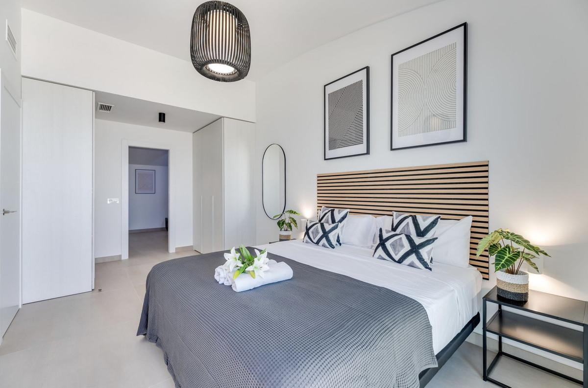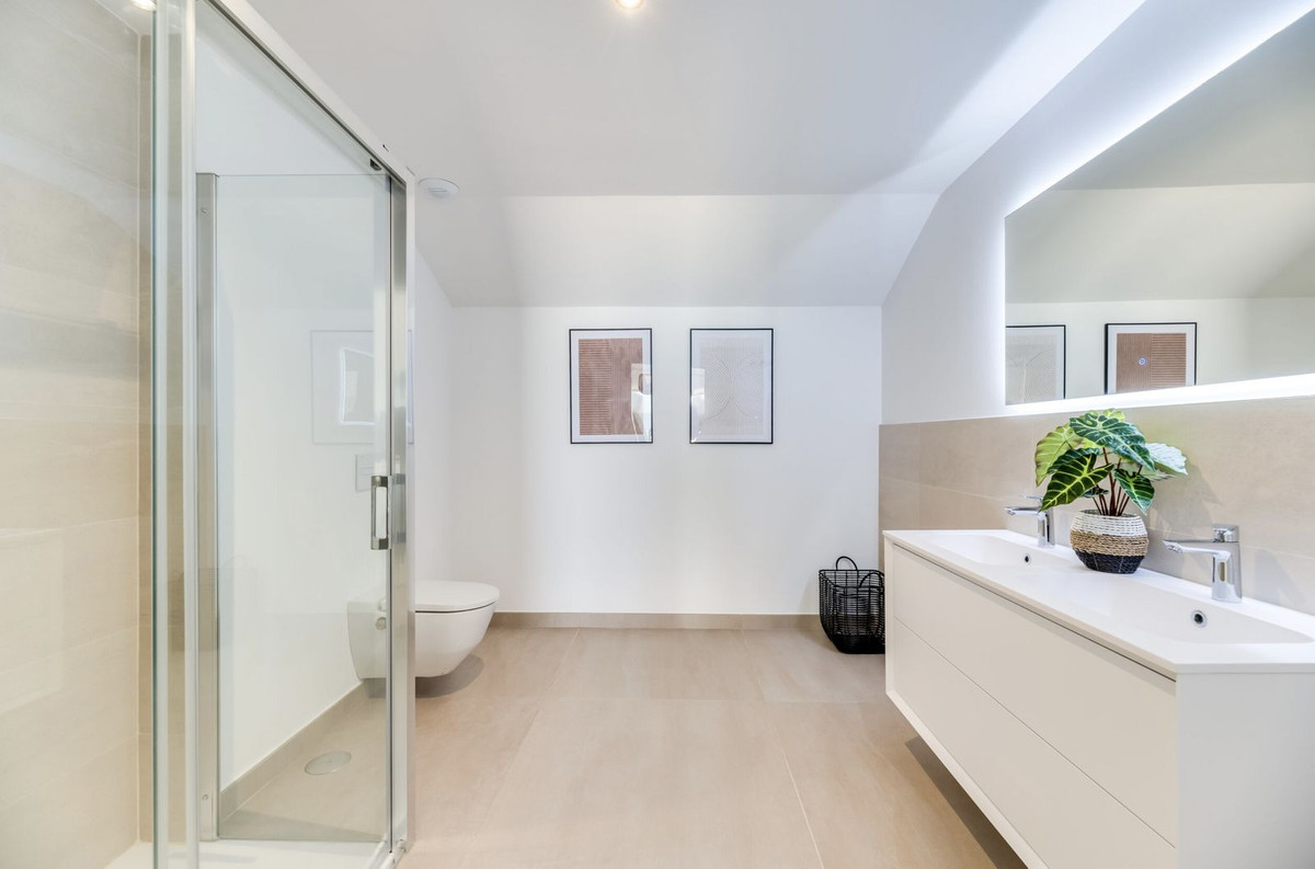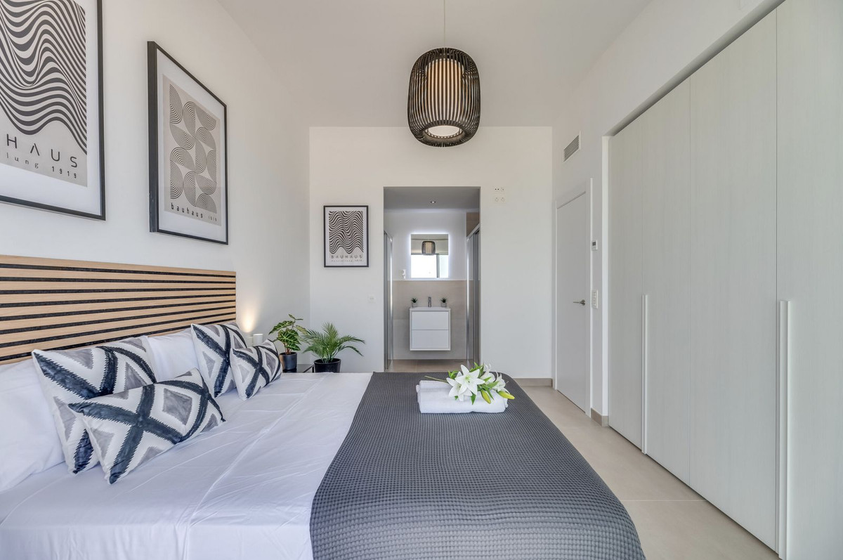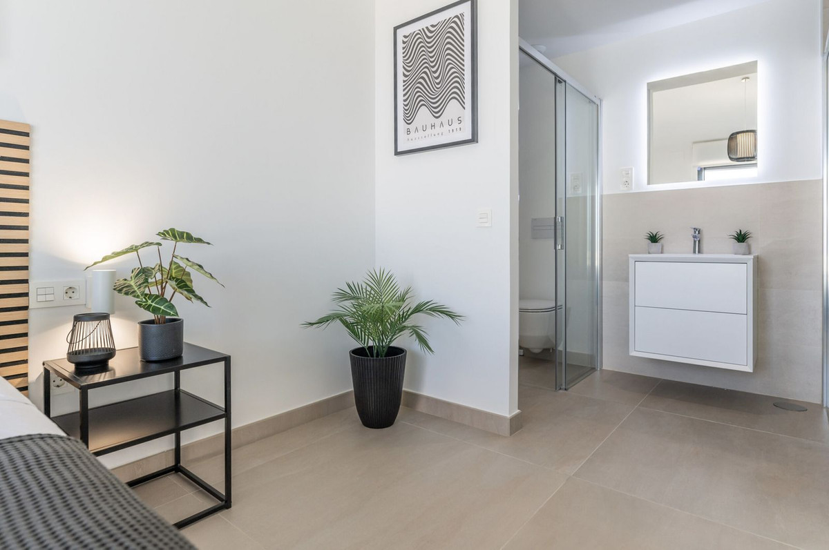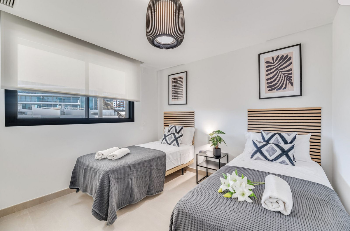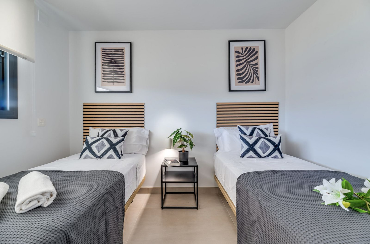 2 of the bedrooms with bathroom en suite and access to the upper terrace with sea views.