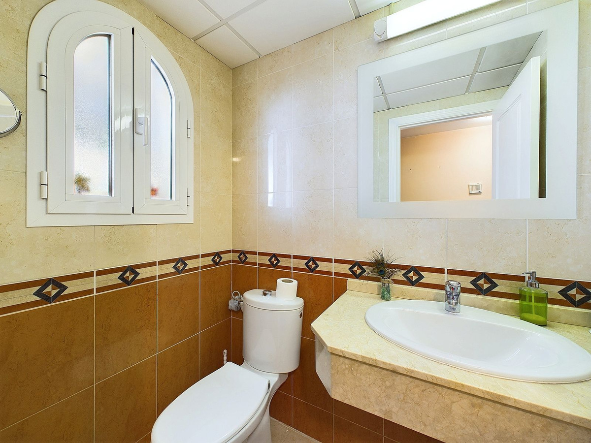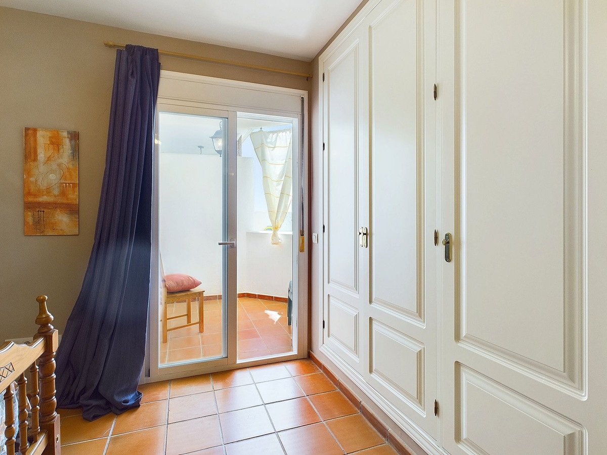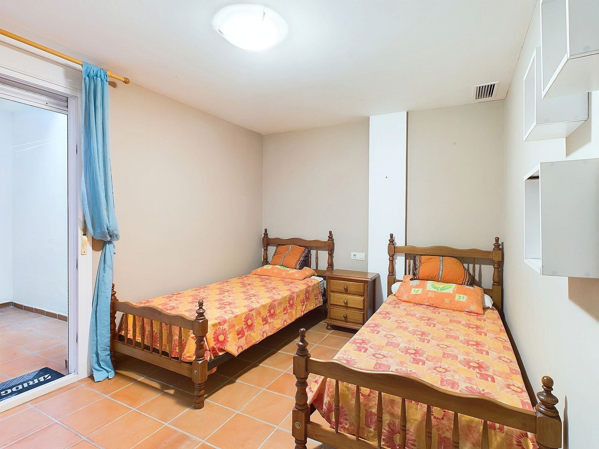 Downstairs, we find a full bathroom servicing the 2 bedrooms. The main bedroom has exit to the internal patio, currently hosting the washing machine and being used as a laundry room. This space would easily transform into a little chilling den with the additon of a bit of greenery, vertical gardens and a hammock, for example, as it is flooded with natural light and brings in natural ventilation while being rain-proof. The second bedroom also enjoys its own little outdoor space with access to a south-facing, cosy terrace overlooking the pool. In total there are 10 meters of outdoor space distributed in the 2 small terraces plus the 9.25 square meters of patio. Both bedrooms have built-in wardrobes and by having the bedrooms downstairs, you are guranteed a cool night of sleep even in the summer months.