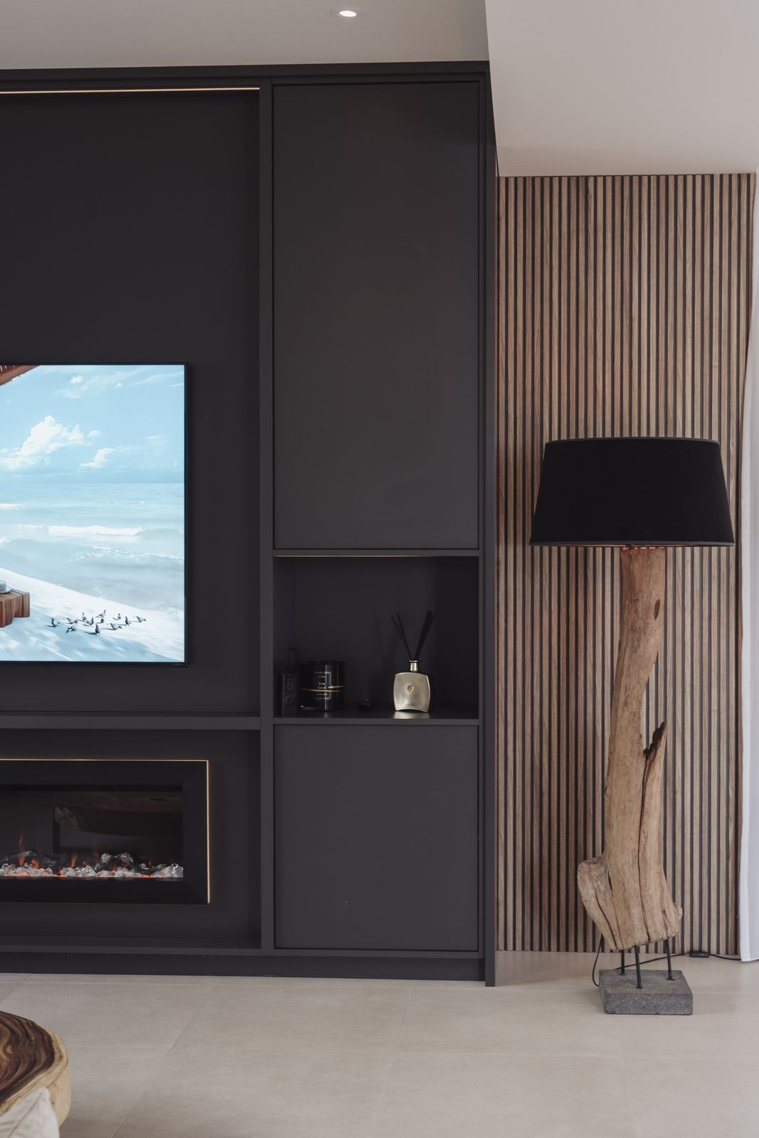 The heart of this stunning home is undoubtedly its open-plan living area, which seamlessly integrates the living, dining, and kitchen spaces into one cohesive and inviting environment. This area opens out onto large terraces, offering breathtaking views and creating an ideal setting for alfresco dining or simply enjoying the beautiful surroundings.