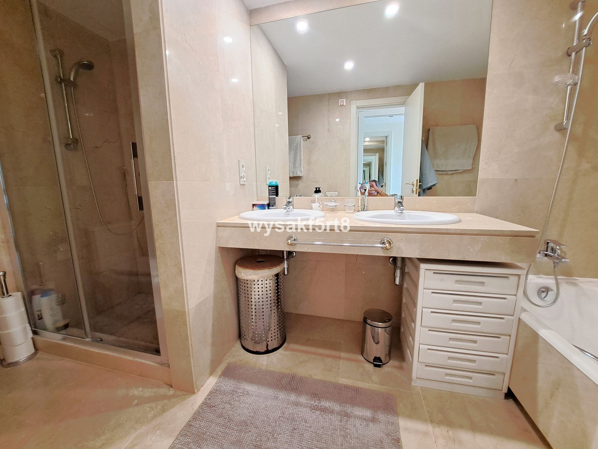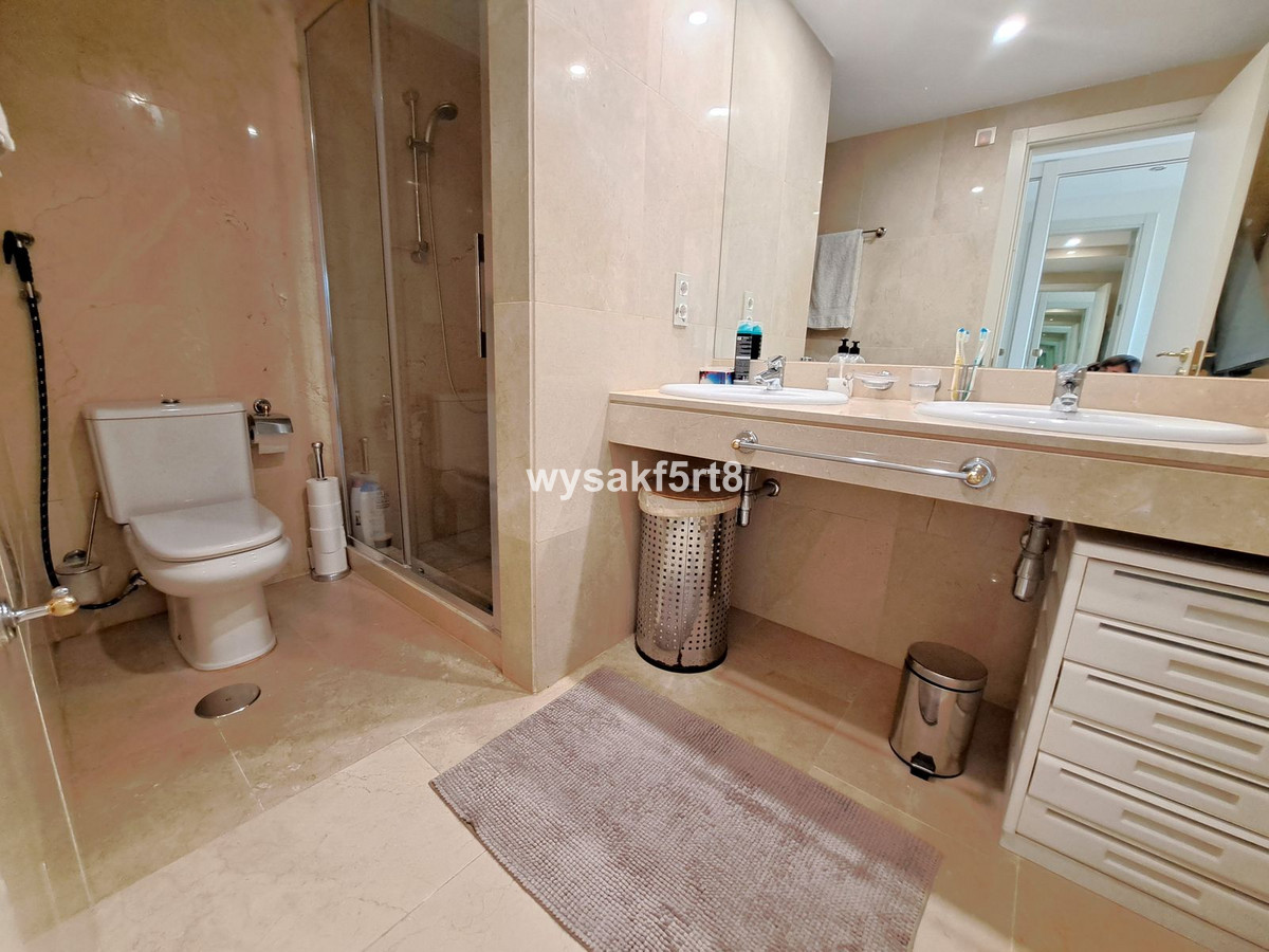 This well-positioned apartment bright and spacious ground floor is situated in the popular Los Granados de la Duquesa, Manilva Costa Del Sol. Front-line beach property between the marina of La Duquesa and the charming village of El Castillo. This is three bedrooms with fitted wardrobes in the rooms and the corridor, 2 bathrooms, a fully fitted kitchen with a laundry area, a 30 m2 bright spacious lounge diner opens out to a good size southeast facing terrace of 47 m2 which benefits views to the beach, pool, and communal gardens.