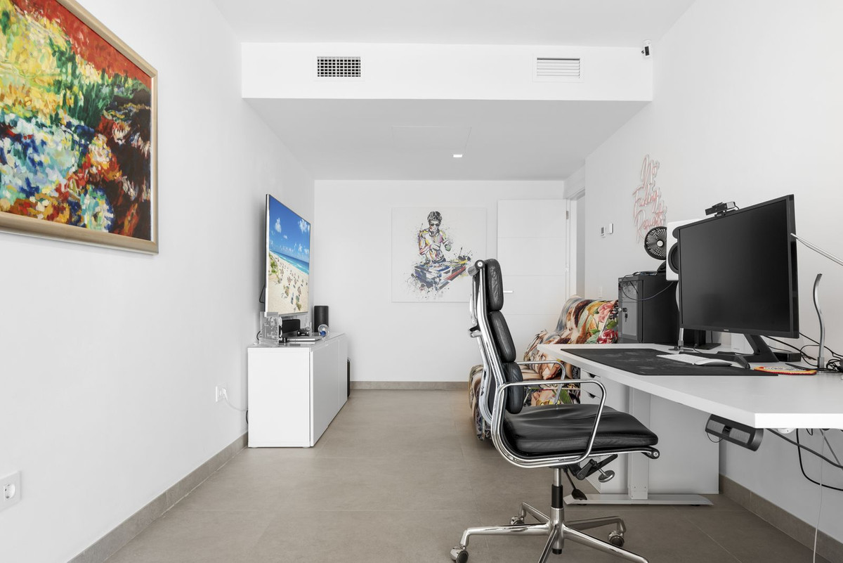 The first floor is home to the luxurious master suite, featuring an impressive walk-in wardrobe and an en-suite bathroom. The master bedroom opens onto a private balcony, where you can enjoy sweeping, uninterrupted views. Adjacent to the master, there’s a room currently used as a study, with pre-installed plumbing if you wish to convert it into an additional bathroom.