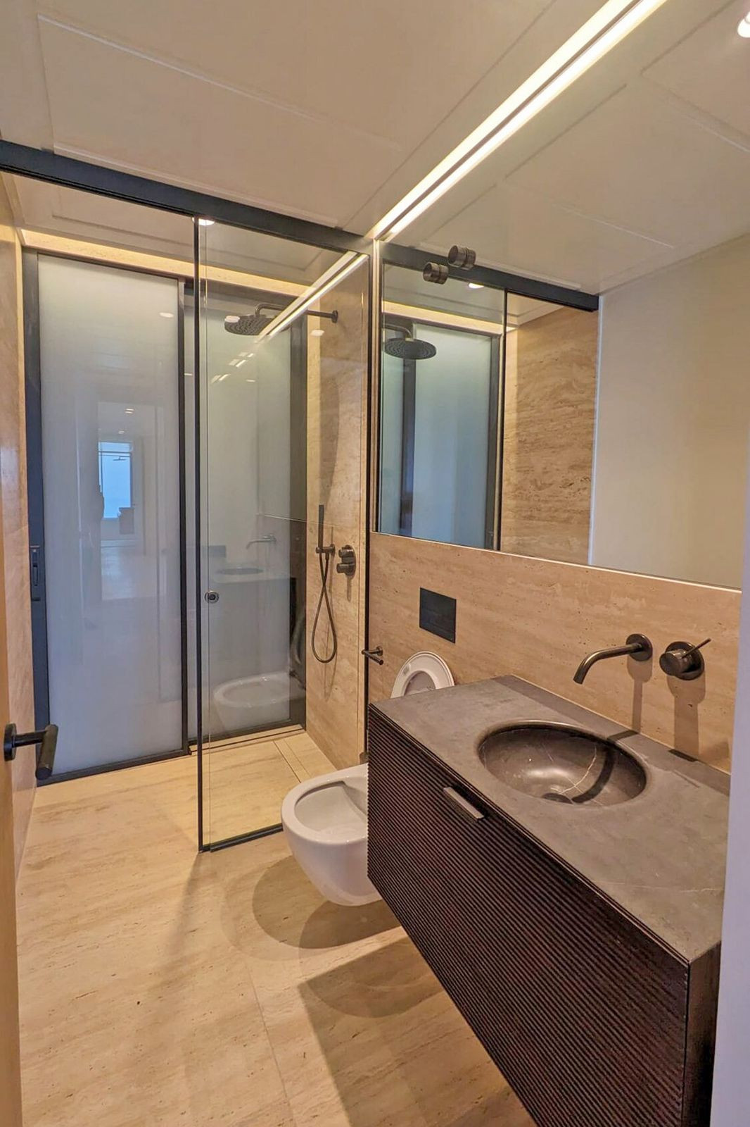 Luxurious three bedroom apartment for sale in this exclusive seafront resort offers a contemporary design, ample interior spaces with views out into the Mediterranean through enormous windows, and extensive terraces with private pools. The use of high-quality materials and cutting-edge technology make this development a real gem. All the homes come with at least two large garage spaces and one storeroom.