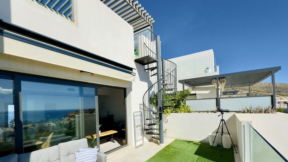 This beautiful 2-bedroom, 2-bathroom penthouse in Benalmadena offers high-quality finishes throughout, creating a luxurious atmosphere. The smart, modern floor plan optimizes space for comfortable living. The outdoor areas are a standout feature, with a south facing lower terrace that enjoys a lot of sun, and a large rooftop terrace with amazing sea views and sunshine all day. A private sauna on the rooftop adds a touch of indulgence.