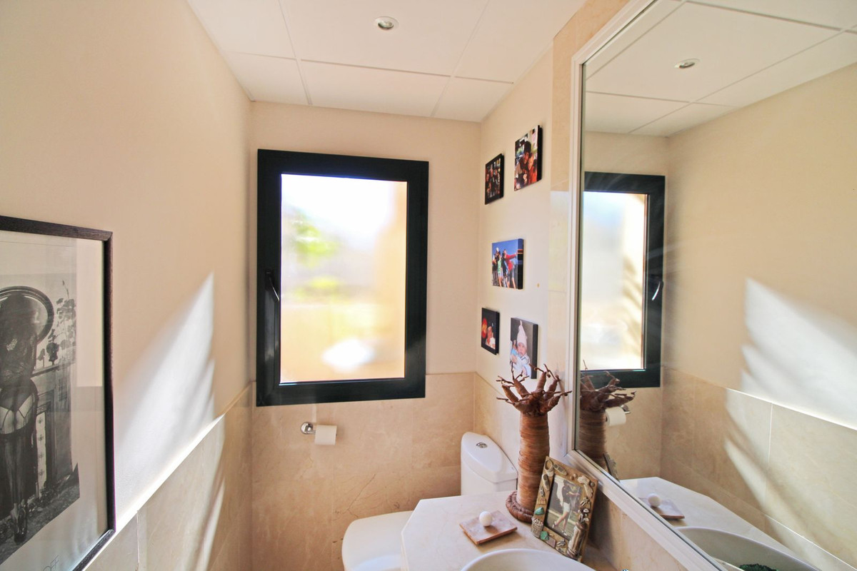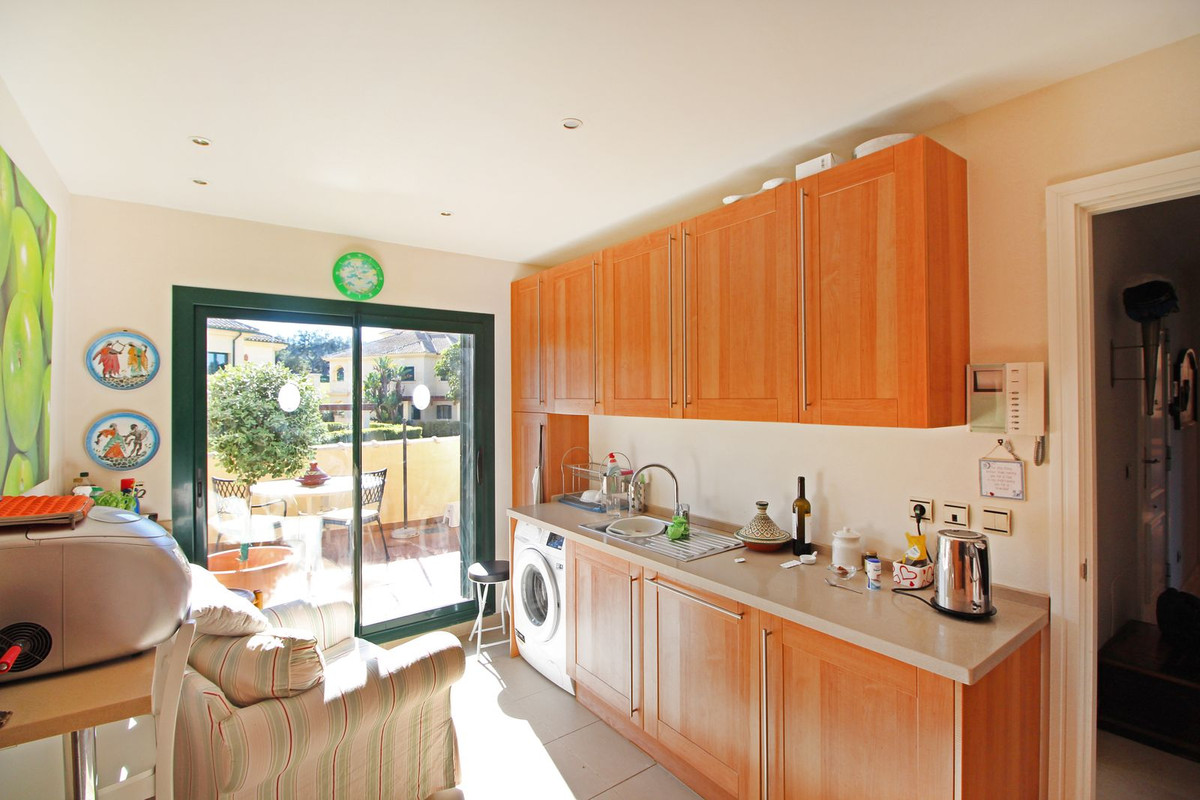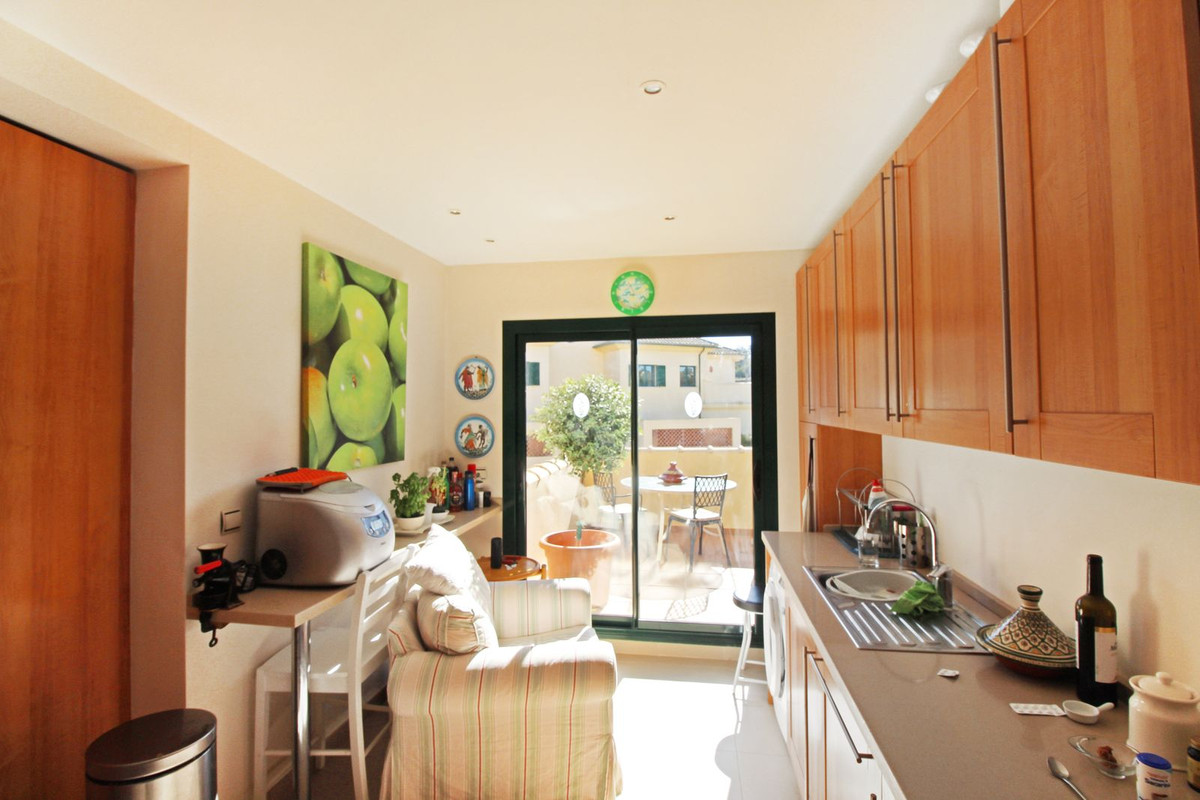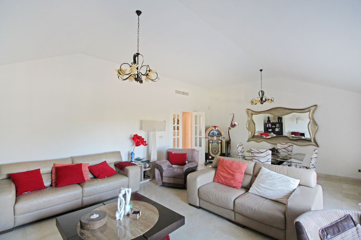 Experience the refined lifestyle at San Roque Club with this beautiful 2-bedroom, 2-bathroom penthouse, positioned frontline to the golf course. The expansive living and dining area features a cozy fireplace, a vaulted ceiling, and large sliding doors that open to a spacious terrace with panoramic views over the prestigious Old Course.