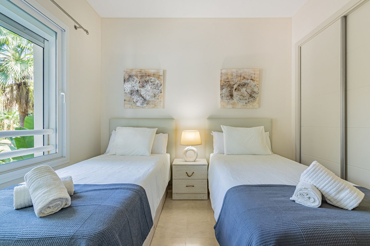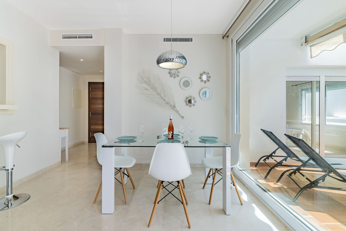 Located in Alcazaba Lagoon urbanisation, this luxury flat is strategically located opposite Estepona Golf, and only a 15-minute drive from the towns of Estepona and Manilva. The accessibility to the AP-7 motorway guarantees a quick and comfortable journey to the main towns of the Costa del Sol. The tranquility of the area is the perfect setting to enjoy outdoor living with family and friends, making this flat the ideal destination for a life of luxury and comfort.