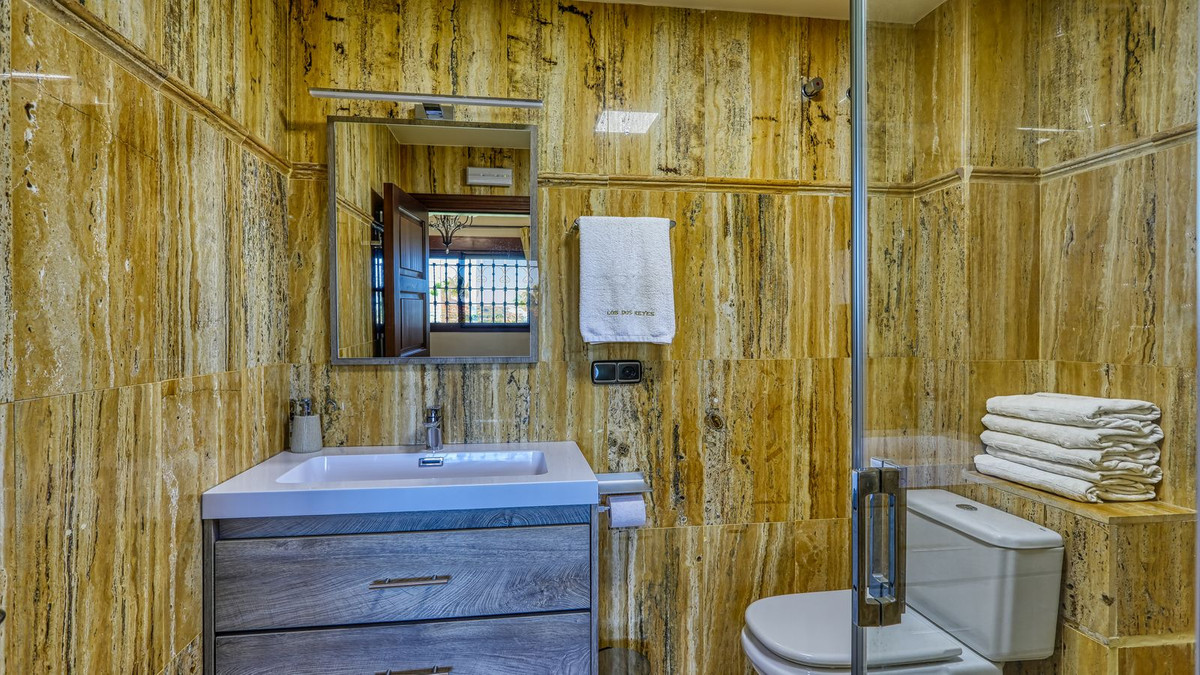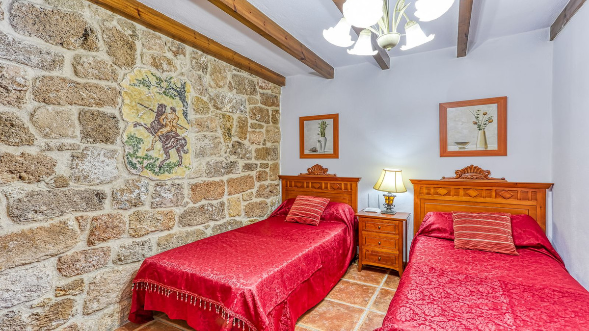 Discover this one-of-a-kind luxurious country estate —a perfect blend of modern elegance and rustic charm, situated just 20 minutes from Málaga Airport and near the lively town of Alhaurín de la Torre. The commanding mansion is beautifully encased in local stone, carefully reclaimed and restored, which imbues the property with unique character and charm. Standout features include the main hall’s stately stone fireplace and a hand-carved coat of arms, all framed by impressive outer columns imported from India.