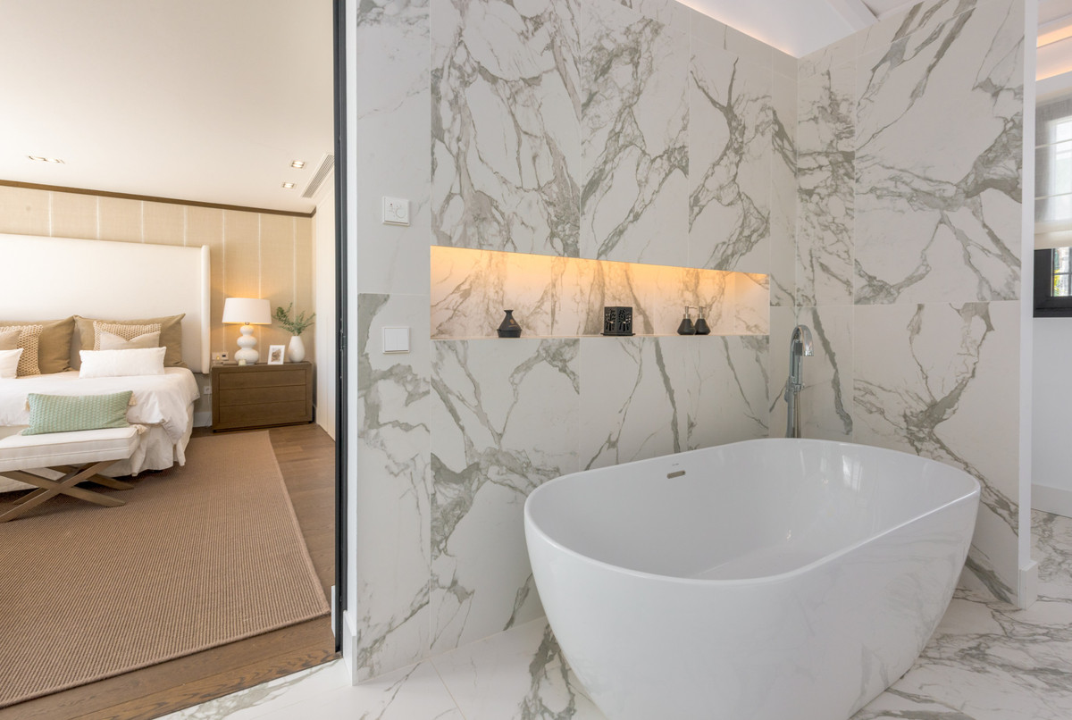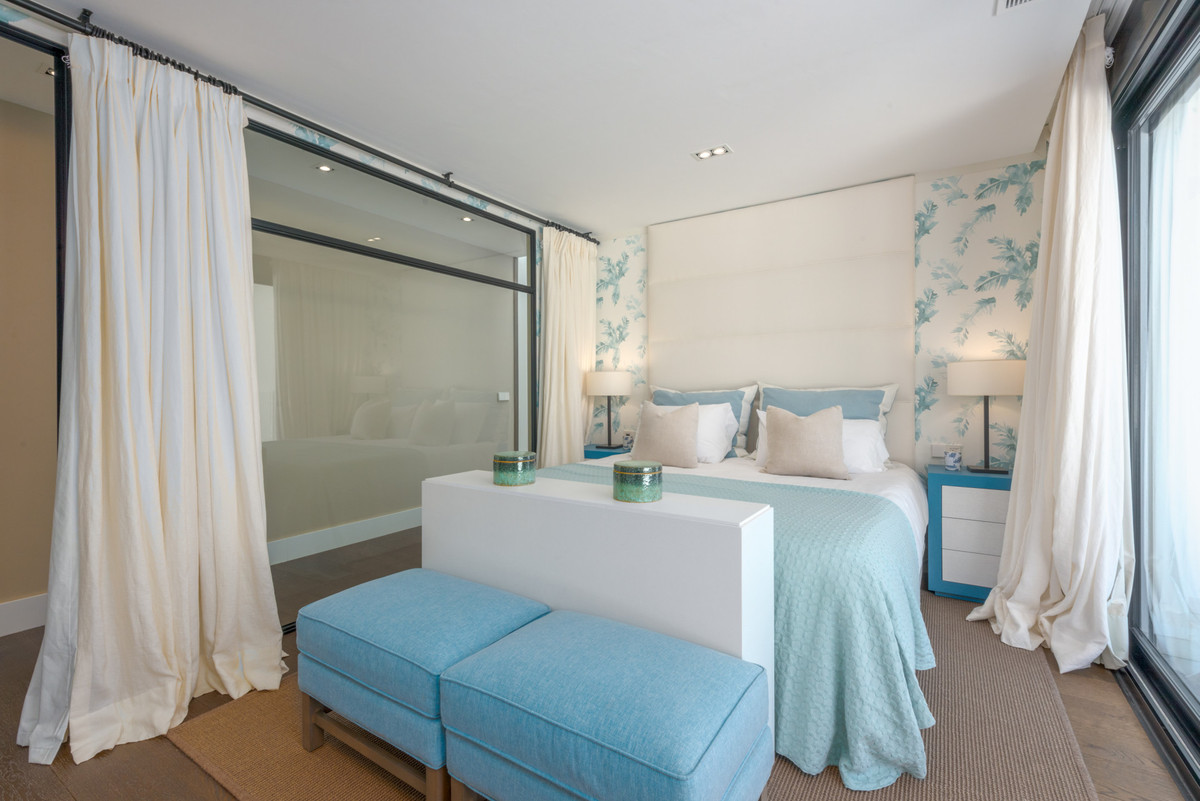 The principal bedroom suite is both sumptuous and extensive, comprising a large private lounge, a bedroom area, as well as a luxuriously appointed bathroom with twin basins, a walk-in shower and a standalone bathtub. There are also two separate, extensive dressing rooms with bespoke carpentry as well as a large private terrace with jacuzzi..