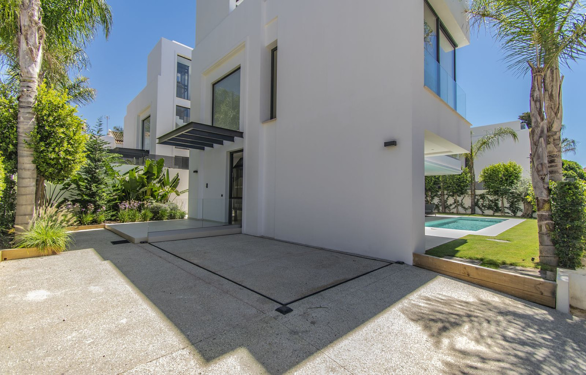 Contemporary style villa with a privileged location just a few meters from the promenade and the beach and just a few minutes walk from Puerto Banus and the Golden Mile.