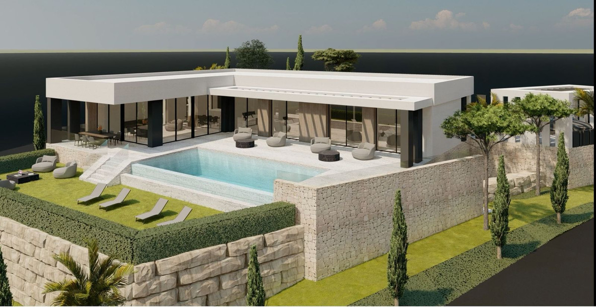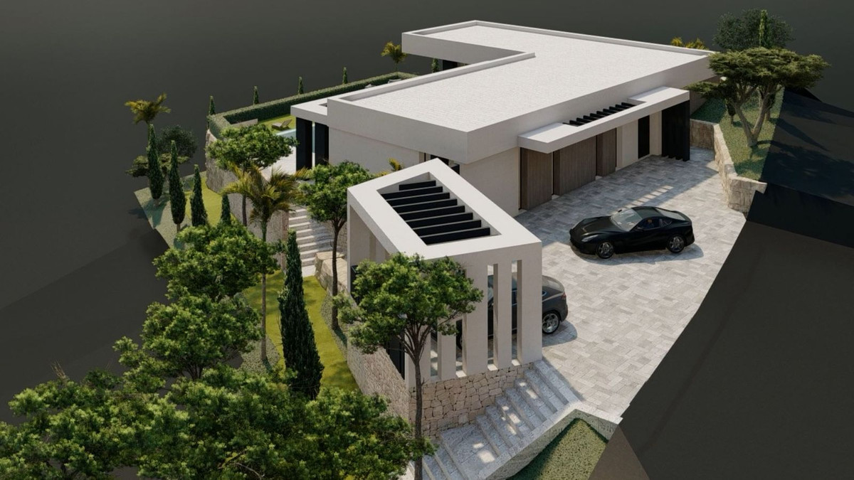 This plot accommodates an exclusive 2-story designer villa spanning 405 m², with 103 m² of south-facing terraces ensuring sunlight throughout the day. The 38 m² swimming pool offers breathtaking views of the Mediterranean sea.