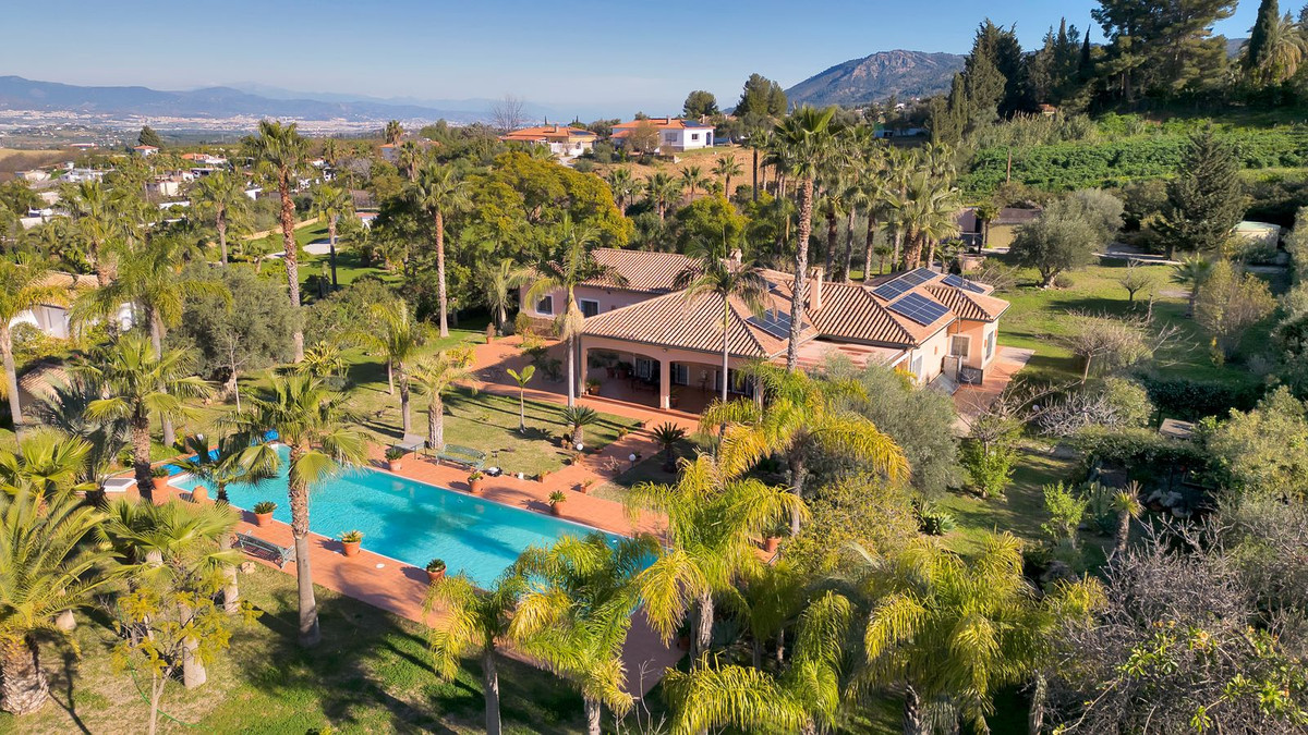 The property has three spacious bedrooms, each with its own full bathroom, plus an additional room housing a laundry room and a sauna. The jewel of this estate is its 20 metre x 5 metre swimming pool, surrounded by palm trees and with breathtaking views of the mountains. For exercise enthusiasts or those looking to relax outdoors, the dojo in the garden is the perfect place.