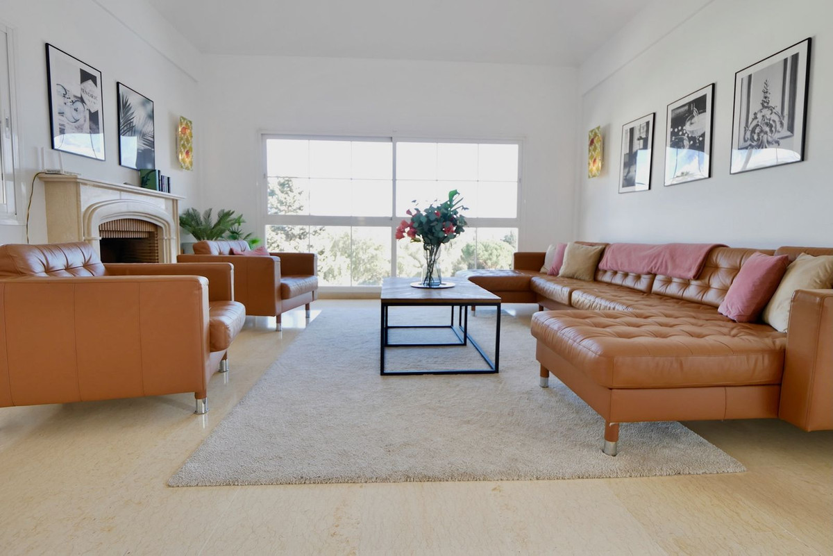In the beautiful and attractive town on the Costa del Sol, La Cala de Mijas (Torrenueva), you will find this fantastic three-story villa with views of the Mediterranean Sea and Spain's Costa del Sol. Just half an hour from Malaga airport by car, you drive two minutes from the main road up towards the mountain and enter a large entrance hall with high ceilings, from where you have access to the villa's bright ground floor and upper floor, lower floor, stylish kitchen, living room with high ceilings, swimming pool and lovely terrace. With a total of 6 bedrooms ( 3 ensuits )4 bathrooms, 1 guest toilet , 2 Living rooms, two kitchens, two entrances, a garage with space for one car and a double garage with space for two cars, there is guaranteed room for the whole family and friends. The home can be divided, with a separate lower floor with three bedrooms, three bathrooms, private entrance and double garage, kitchen and living room. For example, you can have two families stay, rent the home to two families, or rent it to one family, while you yourself stay separately in the villa, with separate garages and entrances from two different streets. On the ground floor you will find one room and one bathroom with living room, kitchen, terrace and pool. If you go up to the first floor, you will find two en-suite bedrooms, where you can wake up with a view of the Mediterranean Sea. The location is absolutely top! Walking distance to some of the best beaches on the coast, the sea, shops, restaurants and driving distance to popular areas such as Marbella and Málaga The villa is centrally located, where you don't hear city and road noise, but get the most beautiful views of various other villas, natural areas, mountains and sea That way you are private, but close to everything . Book a viewing and experience this bright, spacious and beautiful three-story villa with your own eyes