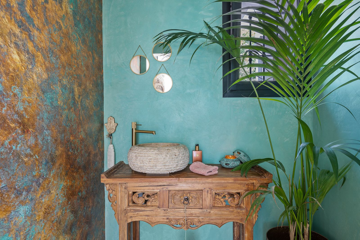 - Ground Floor Haven: Three exceptionally spacious bedrooms grace the ground floor, each accompanied by its own en-suite bathroom. Tadelakt finishing and imported Moroccan taps add a touch of opulence to these private sanctuaries.