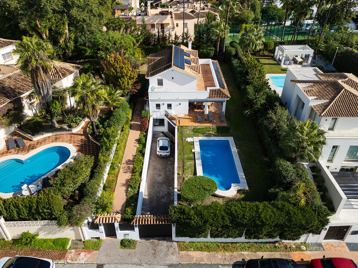 This fantastic villa is located in the middle of the Golf Valley in Nueva Andalucia, a quiet and very attractive area with proximity to golf courses such as Las Brisas, Los Naranjos and Aloha Golf.