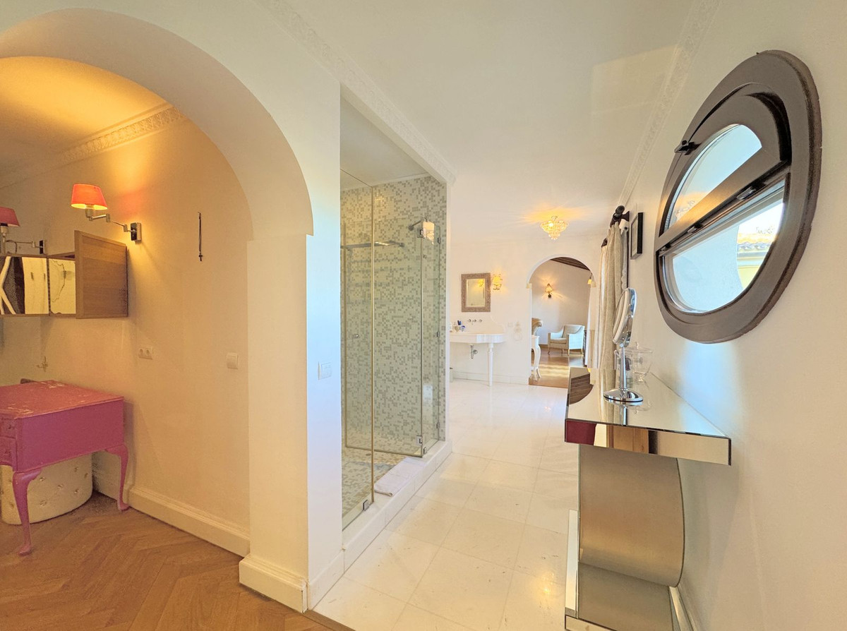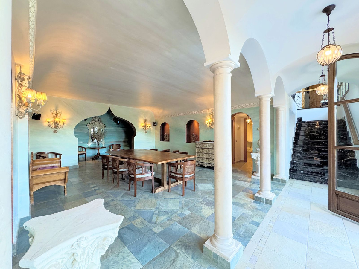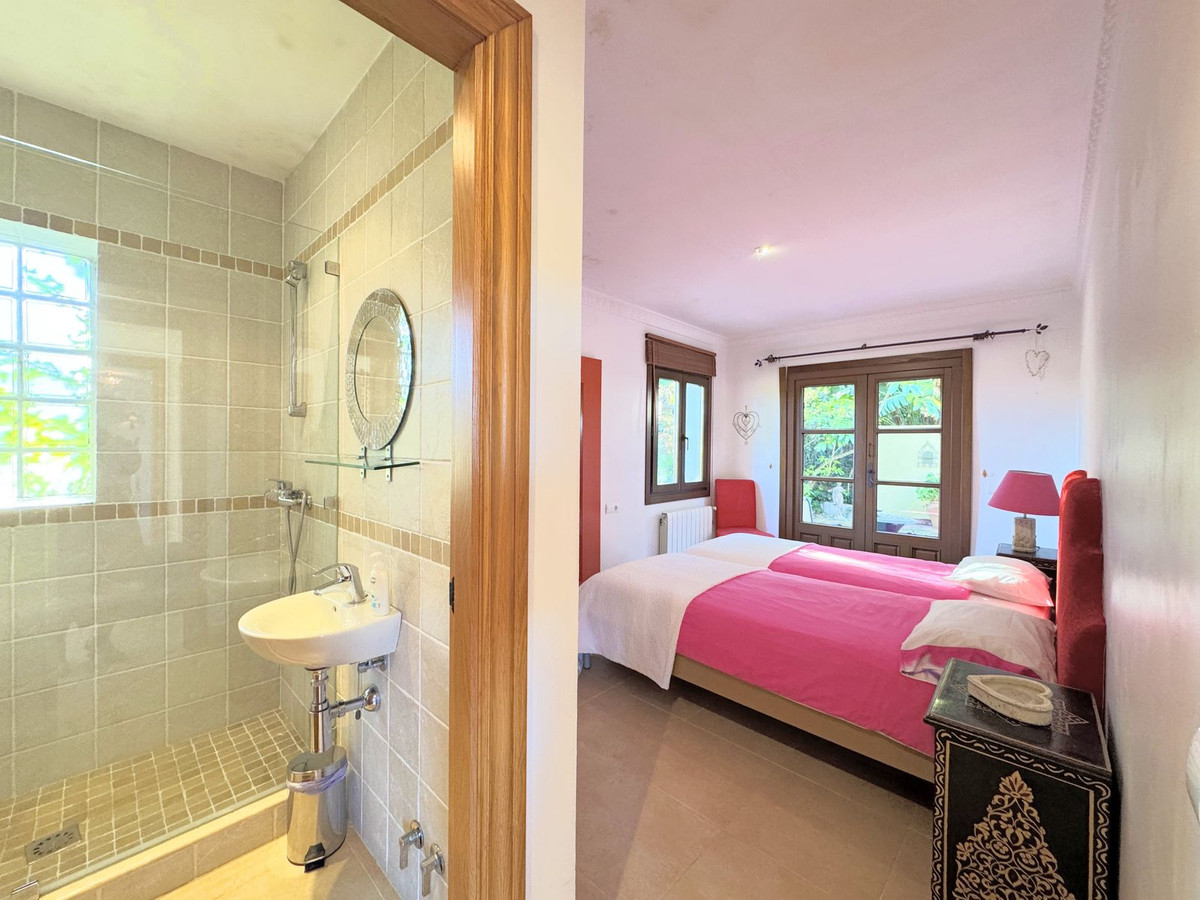 On the lower level, you will discover an environment designed for relaxation and conviviality. It includes a TV room with fireplace, a contemporary kitchen and a Moroccan-inspired dining room. All these areas connect directly to the terraces, the swimming pool and a beautiful garden, creating a perfect space to enjoy unforgettable moments outdoors.