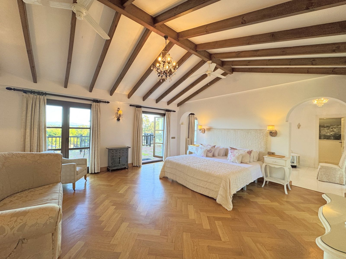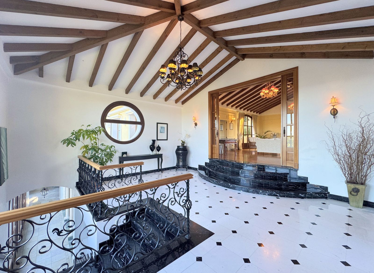 This unique residence has terraces and balconies on all levels, from where spectacular views of the golf course and the majestic mountains can be admired.
