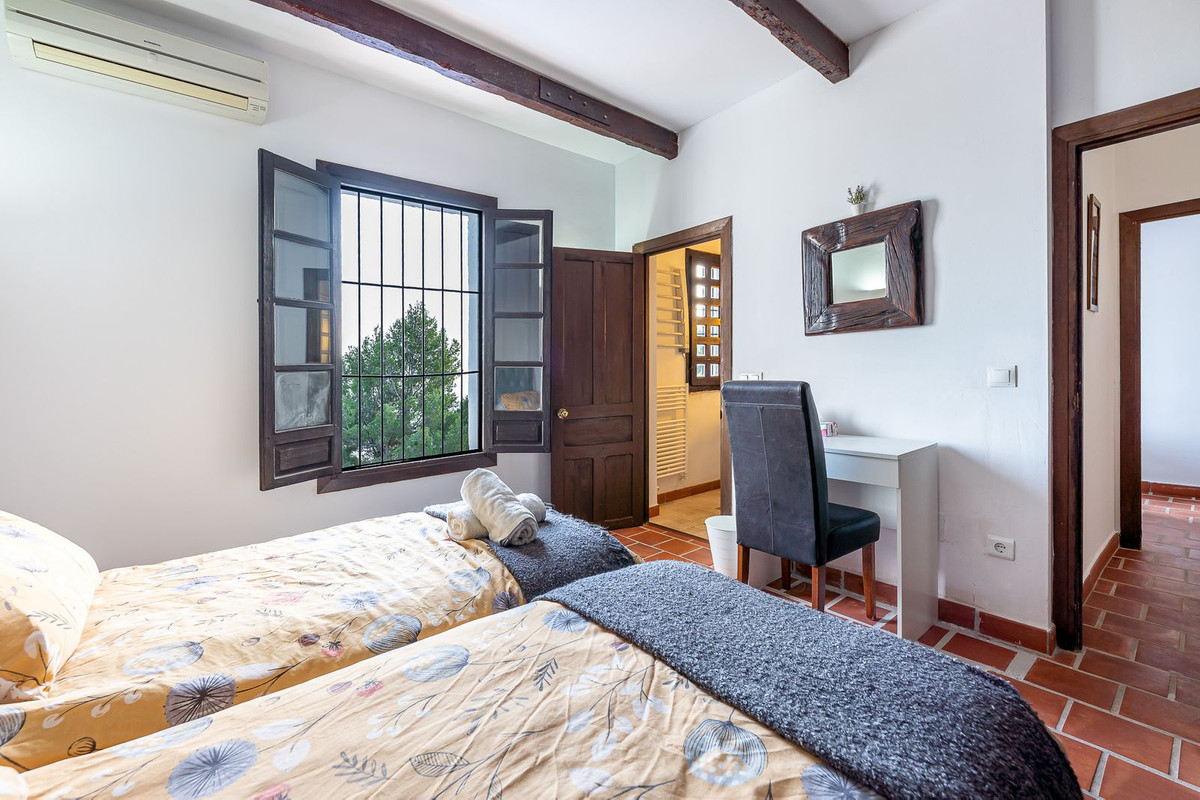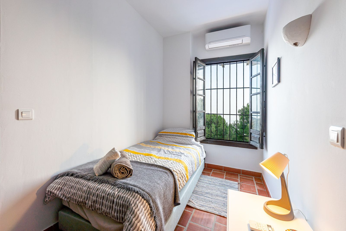 There is a private sloping driveway leads to a gated off road parking area and there is plenty of space to park additional cars on the quiet road outside. There is also a bus stop a few minutes walk away which will take you either to the beautiful white washed traditional village of MIjas Pueblo or market town of Alhaurin.