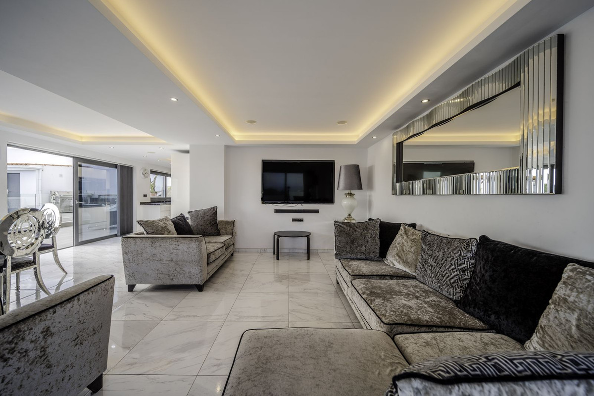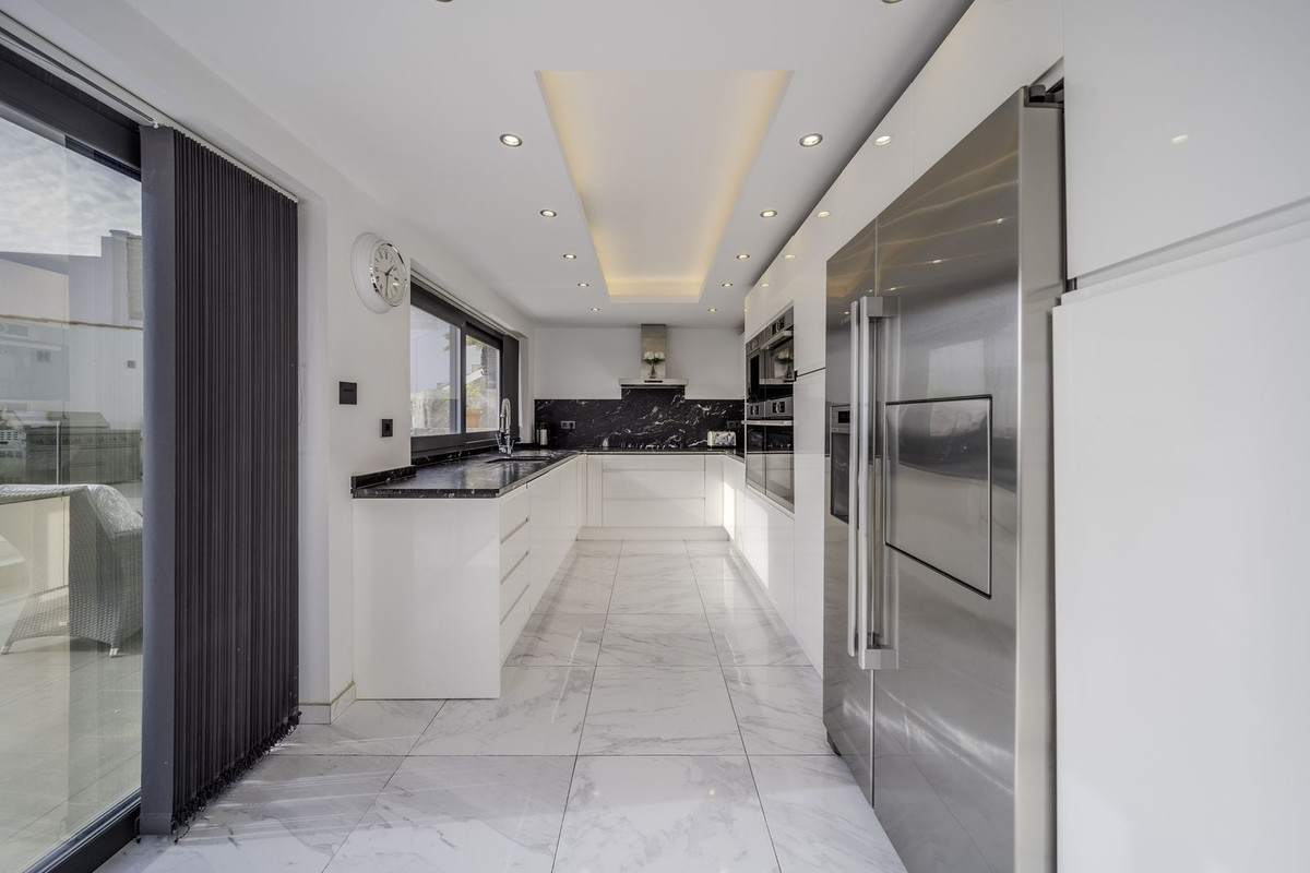 Inside, the villa features a *spacious kitchen integrated into the living room, perfect for entertaining and family gatherings, as well as an **outdoor kitchen on the terrace, designed for alfresco dining with breathtaking views. In total, the property offers **three kitchens*.