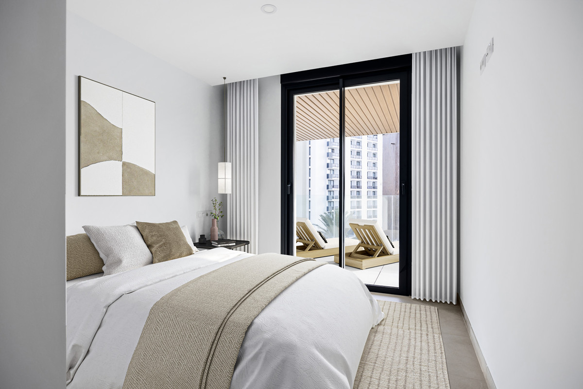 Introducing an unparalleled opportunity to own a brand new, never-before-lived-in apartment a few meters from the beach. This luxurious residence boasts a spacious open floor plan, adorned with high-quality materials and fresh, bright colors that create a vibrant and welcoming atmosphere. The east-facing apartment is bathed in natural light, thanks to the expansive windows and sliding doors that seamlessly connect to a wrap-around terrace, offering stunning sea and mountain views and an ideal space for relaxation and entertainment.