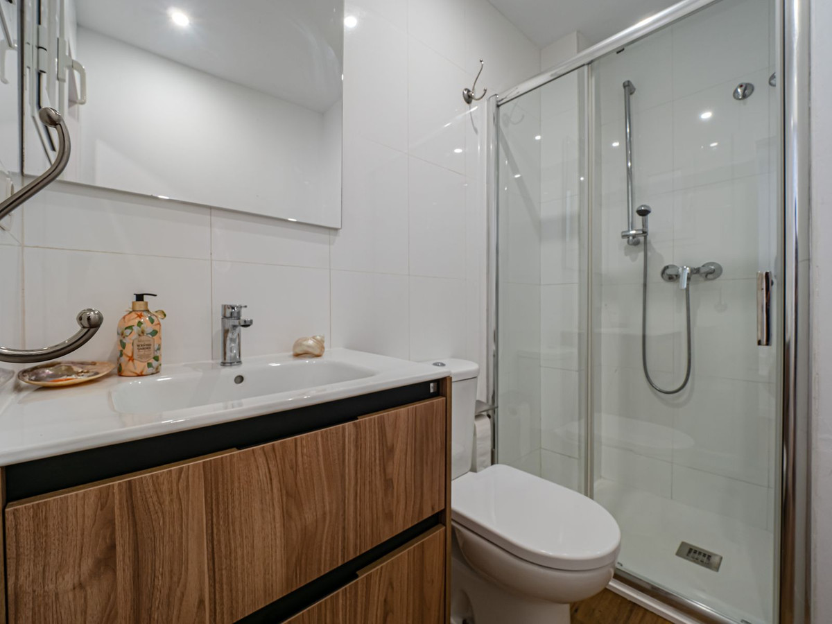 Spectacular semi detached villa with stunning sea views, highlight its excellent condition as well as the qualities, the luminosity of the rooms, the sea views from the interior of the house and its private pool. The street level floor is a closed garage with capacity for a large vehicle and motorcycle, through a staircase we access the main floor where we find a large living room with dining area, a modern open kitchen, a full bathroom with shower, iron/washer area and a terrace open to the sea. The first floor is distributed in 3 bedrooms and 2 bathrooms, the master bedroom with large windows open to the sea and en suite bathroom. In the distributor of the plant we access through a spiral staircase to a cosy room also with a large front window to the sea.
