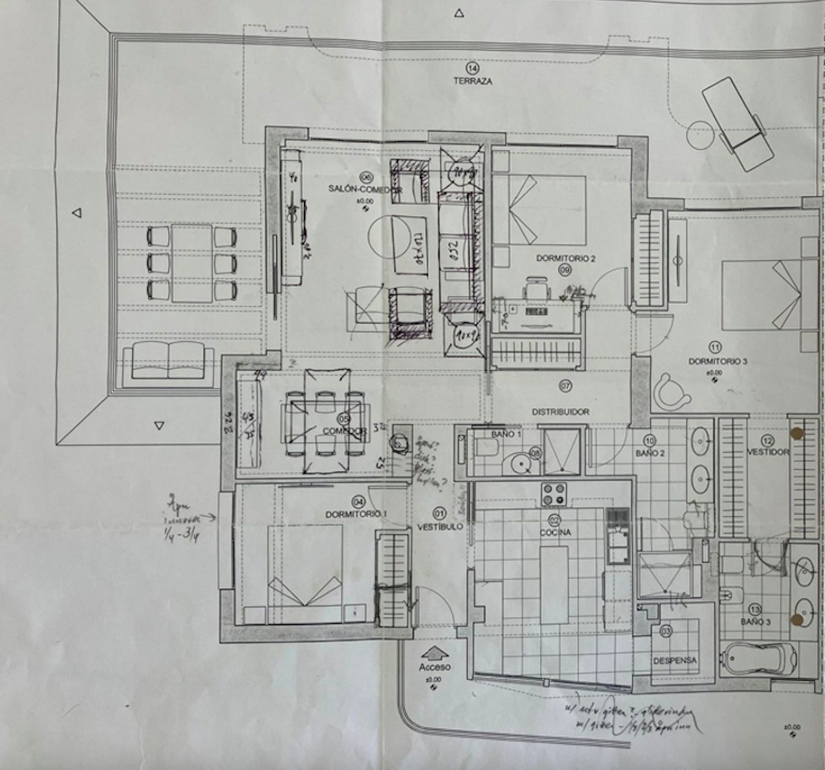 Further on there are two more bathrooms, a second guest bedroom also with access to the terrace and the master bedroom with en-suite bathroom, also with access to the south facing sun terrace.