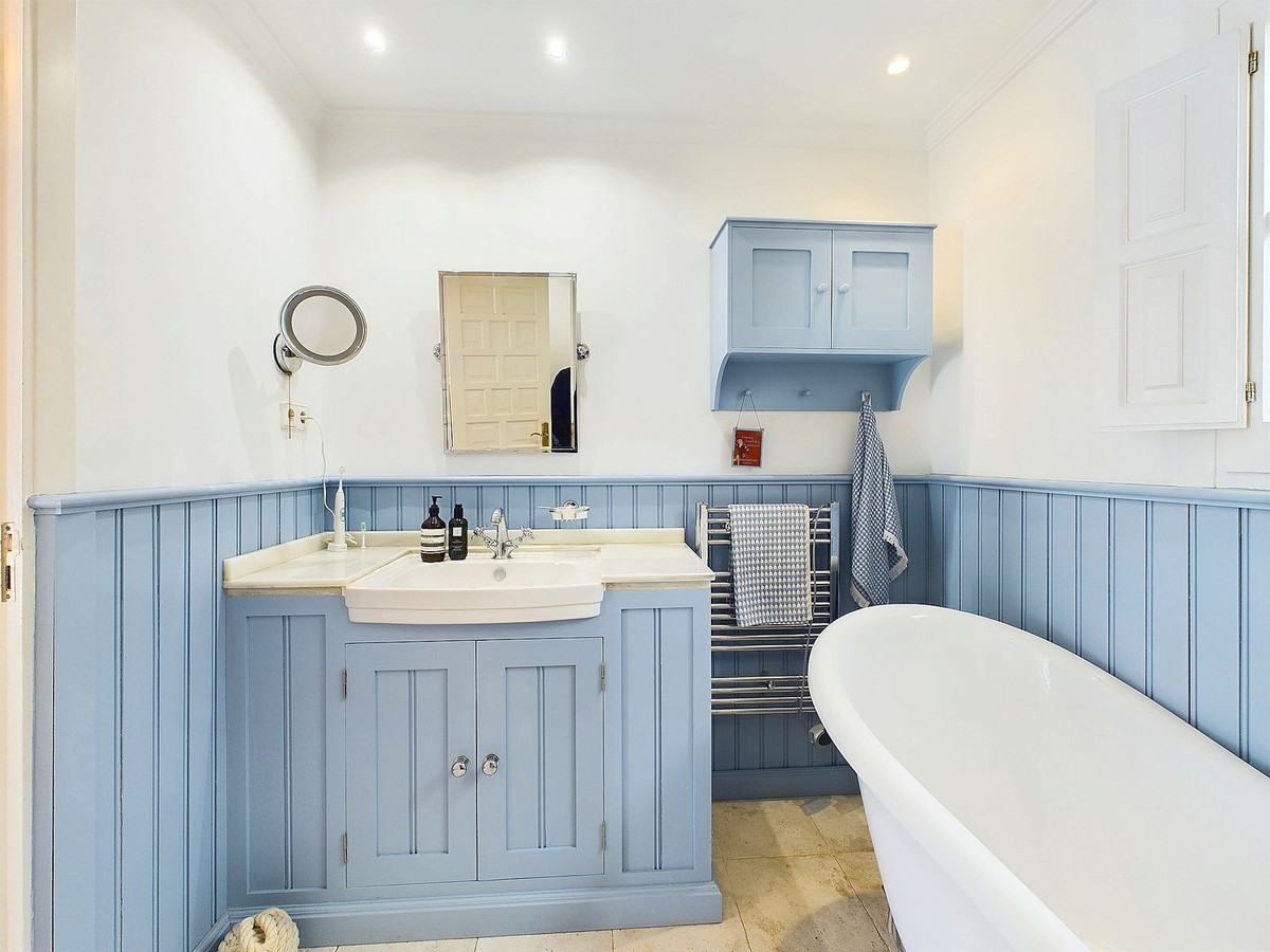 The master bedroom is located on the upper level and features an en suite bathroom with a stunning 'roll-top bath'. This bedroom has its own private terrace with a jacuzzi, perfect for relaxing while enjoying the beautiful views. On the lower level, there are two guest bedrooms. Bedroom 3 has a bathroom with a steam shower, and the second bedroom also has an en suite bathroom with a large walk-in shower.