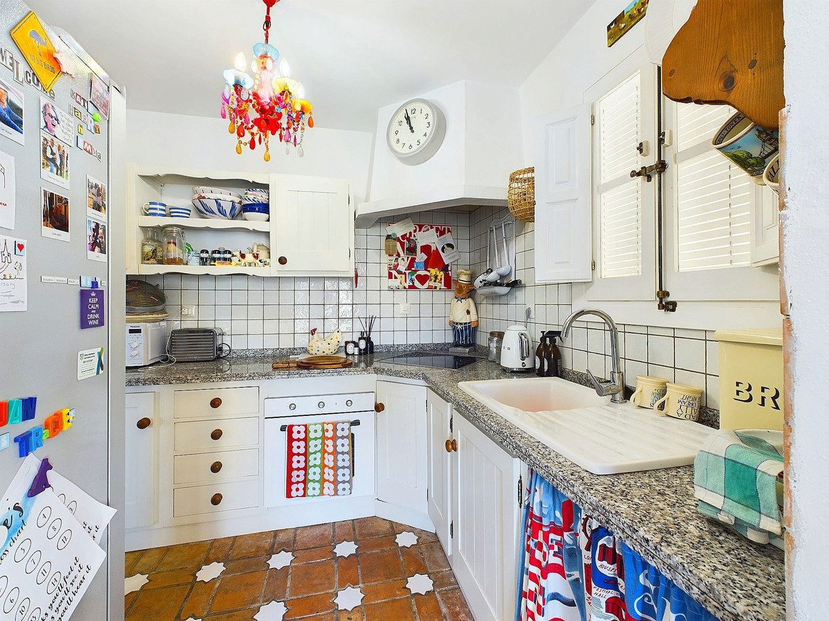 The spacious living room opens onto a large terrace, offering lovely views of the village and the sea. The kitchen is fully fitted and includes an American fridge-freezer, while the dining room is conveniently located between the kitchen and the terrace.