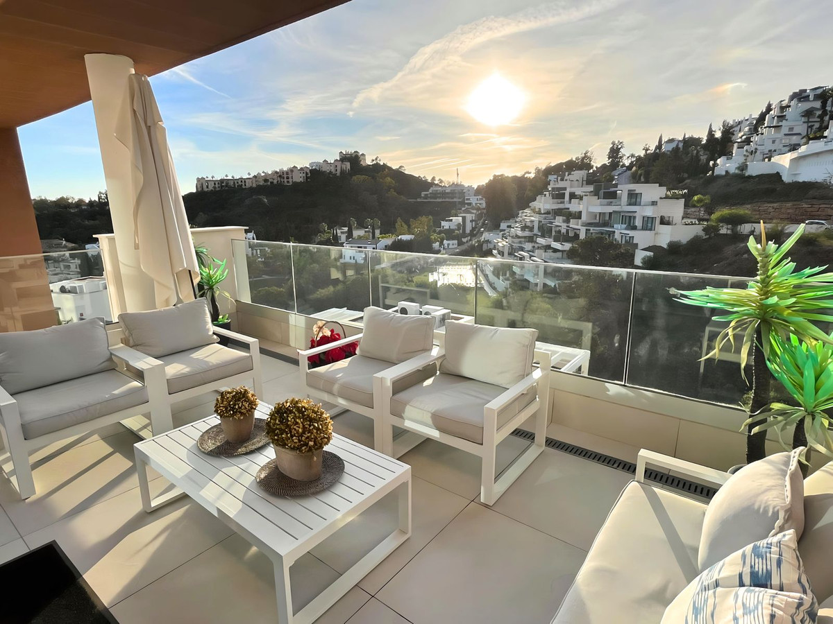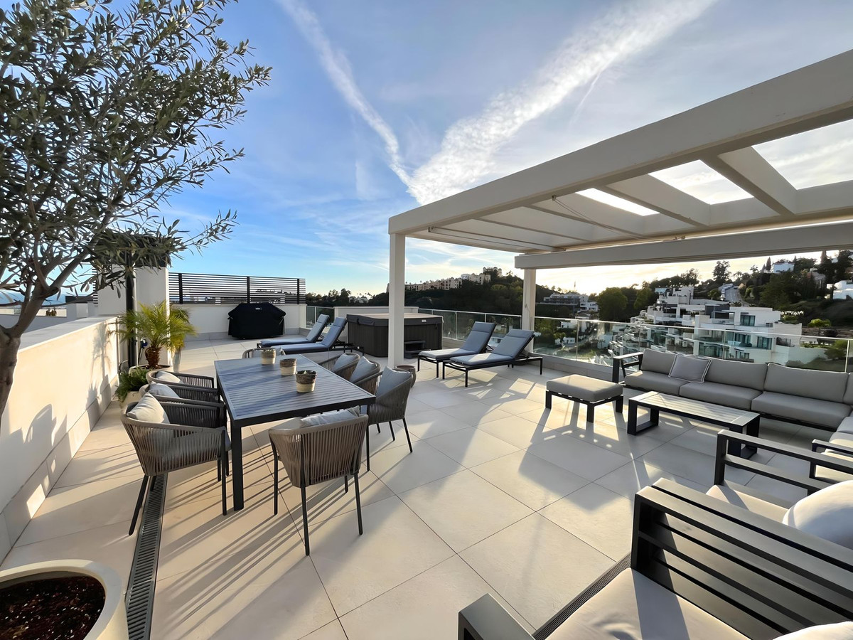 Set above La Quinta Golf Course and just minutes from Puerto Banús and San Pedro, this modern 3-bedroom, 2-bathroom penthouse offers nearly 200 m² of private outdoor space, including a stunning second-floor terrace with a Jacuzzi, dining, and lounge areas, all with breathtaking sea and landscape views.
