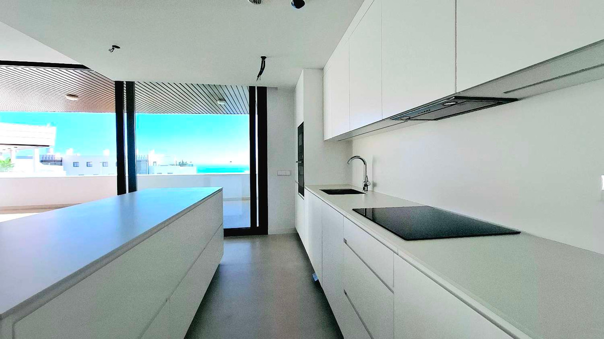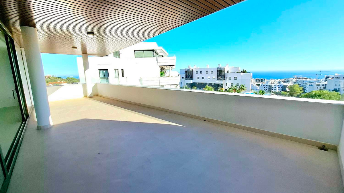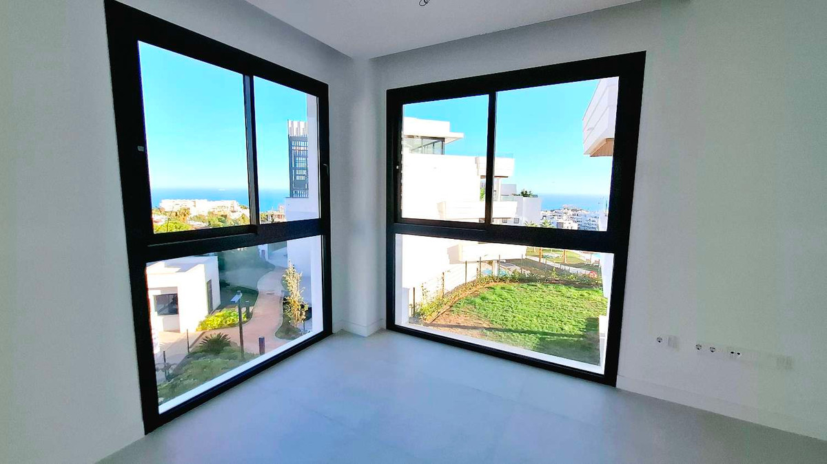 Spacious and bright brand new apartment with sea views in Higuerón West! 3 bedrooms, 2 bathrooms (one of them en suite) and a toilet, open-plan kitchen fully furnished and equipped with Neff appliances, laundry room, large living room with floor-to-ceiling windows and access to the 40m2 terrace, beautiful views of the common areas and the sea. Excellent qualities: double glazing, air conditioning, large porcelain floors, fitted wardrobes, two parking spaces and a 6m2 storage room. A perfect home to enjoy the Mediterranean climate.