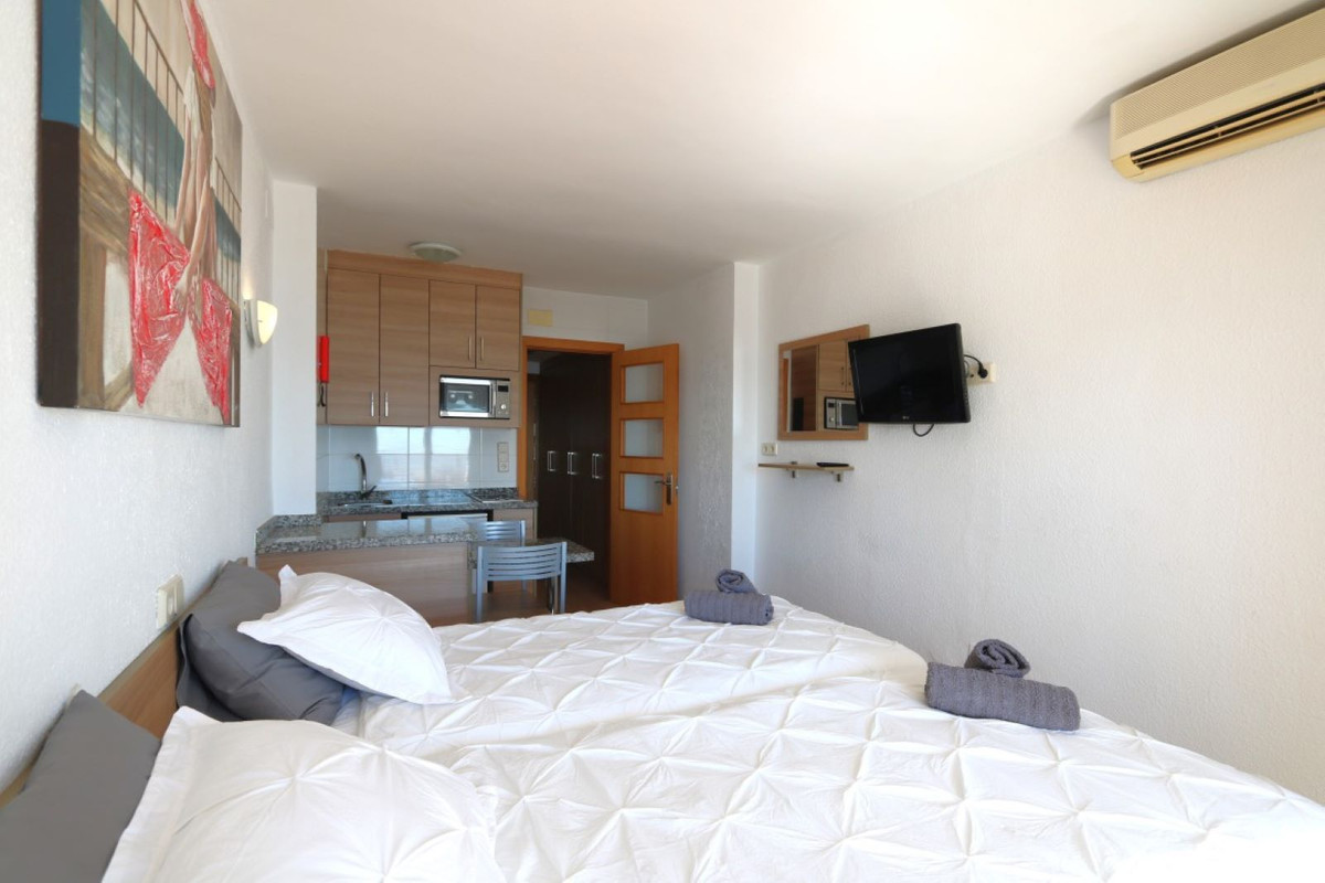 This penthouse has it all. Located just 100 m from the beach and 50 m from Carvajal train station. The bright, tastefully decorated 2 bedroom, 2 bathroom penthouse is in new condition. The apartment is also prepared to expand to 3 bedrooms in one part of the living room. It has an open plan with a bar kitchen, large covered terrace with lovely sea views. With a private roof terrace with splash pool and BBQ and sun terrace, you have fantastic sea views. A large communal pool is on site and 2 garage spaces and storage are included in the price.