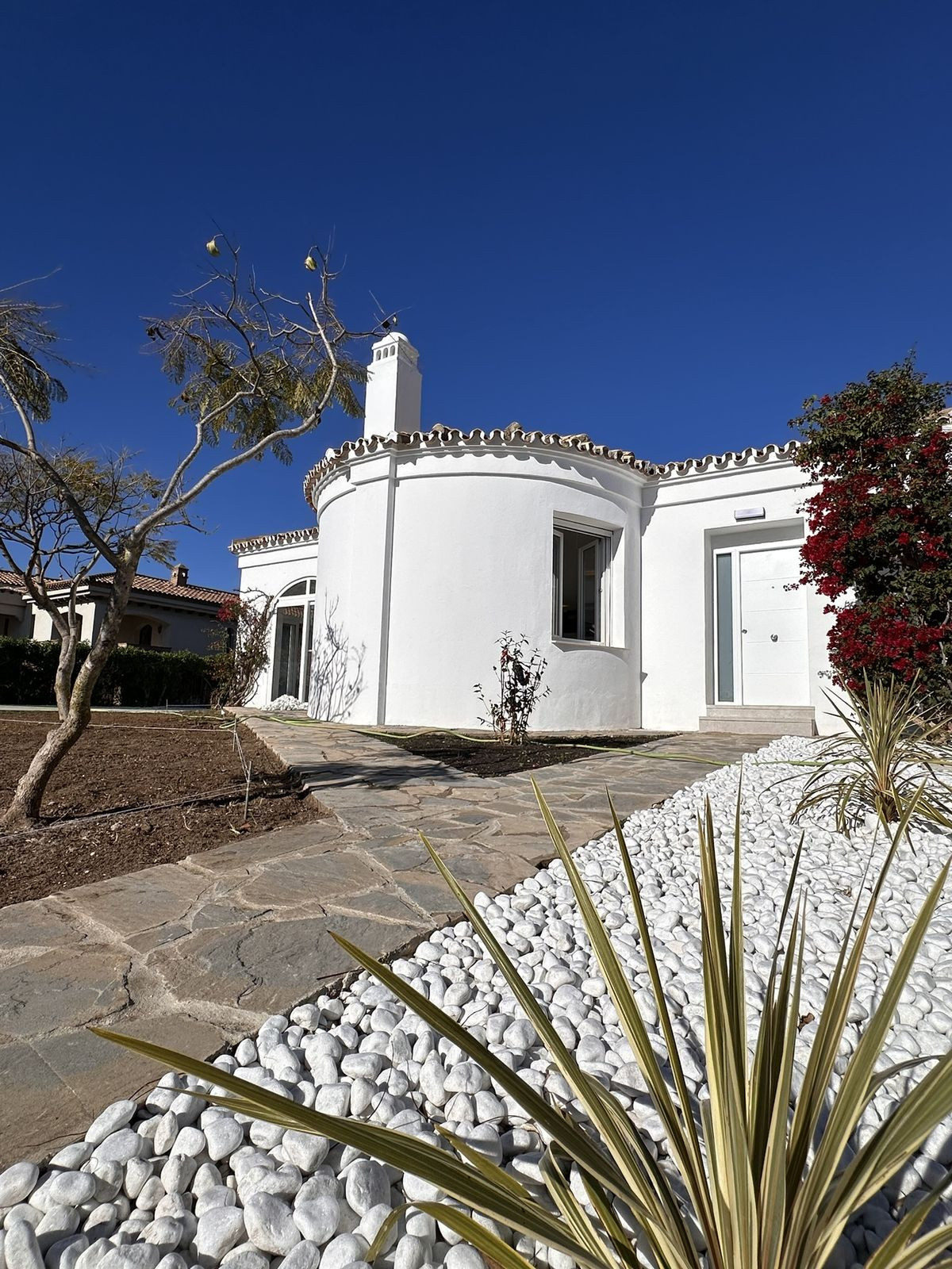 Fully renovated luxury villa on a large private plot with views of the green area in an established and desirable residential area, La Duquesa. This single-story villa has 4 generously sized bedrooms, all with private bathrooms. Spacious open plan living room, brand new high-quality contemporary kitchen with top-of-the-range appliances. The heart of the home centers around a large fireplace and a living area with magnificent sea views. The private pool and terraces are south-facing, enjoy expansive sea and mountain views and are ideal for families and outdoor living. Unique features are the large flat garden ideal for developing or an incredible children's area. Hilltop location overlooking the green zone park to provide tranquility and views. The demanding high-specification finish ensures buyers can simply move in and enjoy life. Solar panels provide heating and hot water, ensuring low energy costs throughout the year. Large windows allow incredible views and a wonderful harmony from the property to the private gardens.