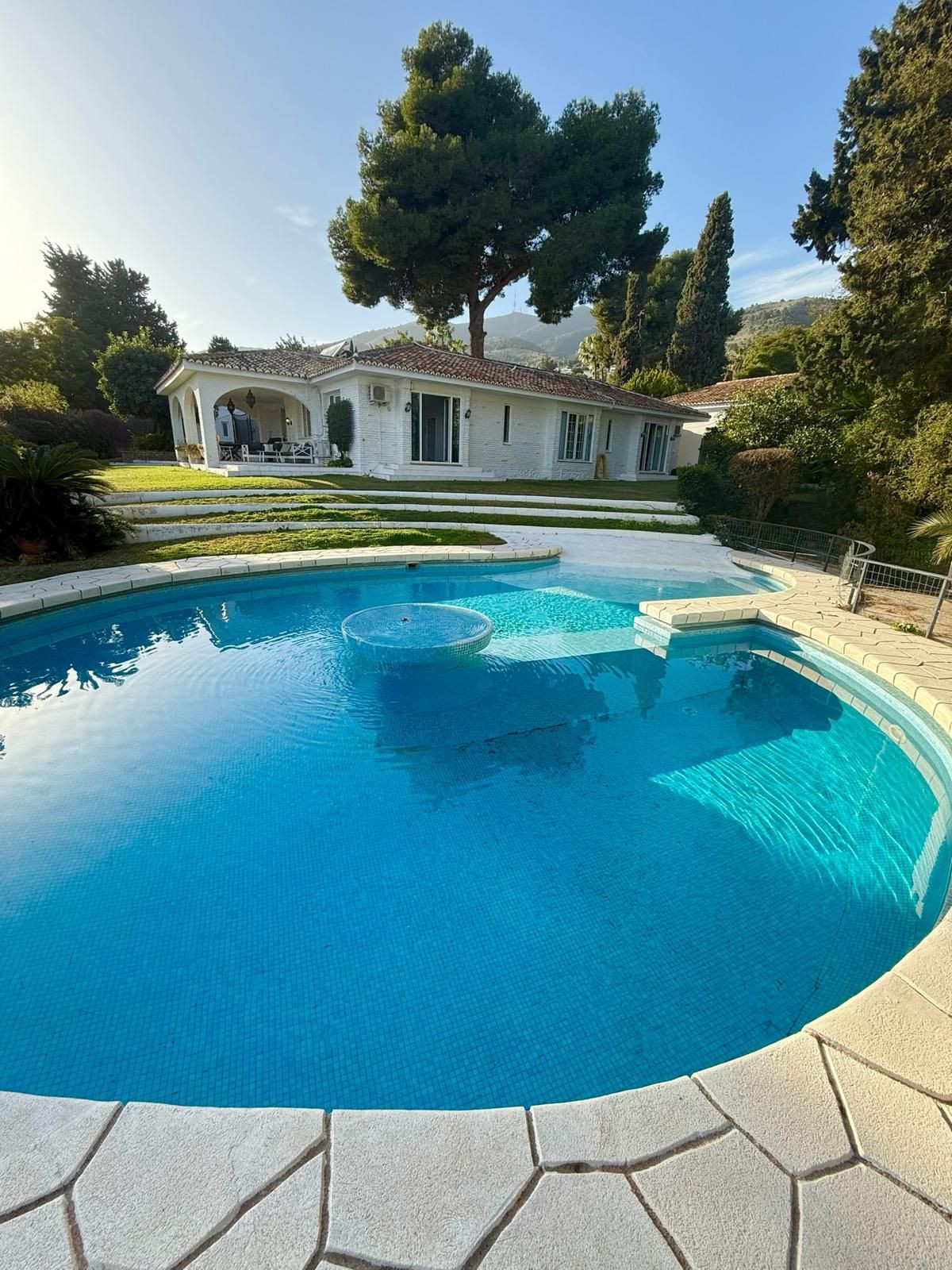 The south-facing outdoor space is designed for comfort and leisure. A sparkling swimming pool is surrounded by a beautifully maintained garden, while the expansive terrace includes a barbecue area and offers breathtaking panoramic views.