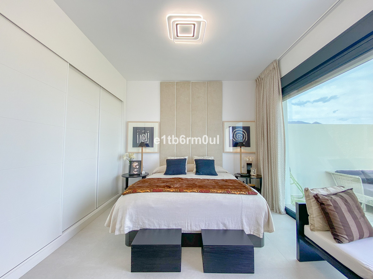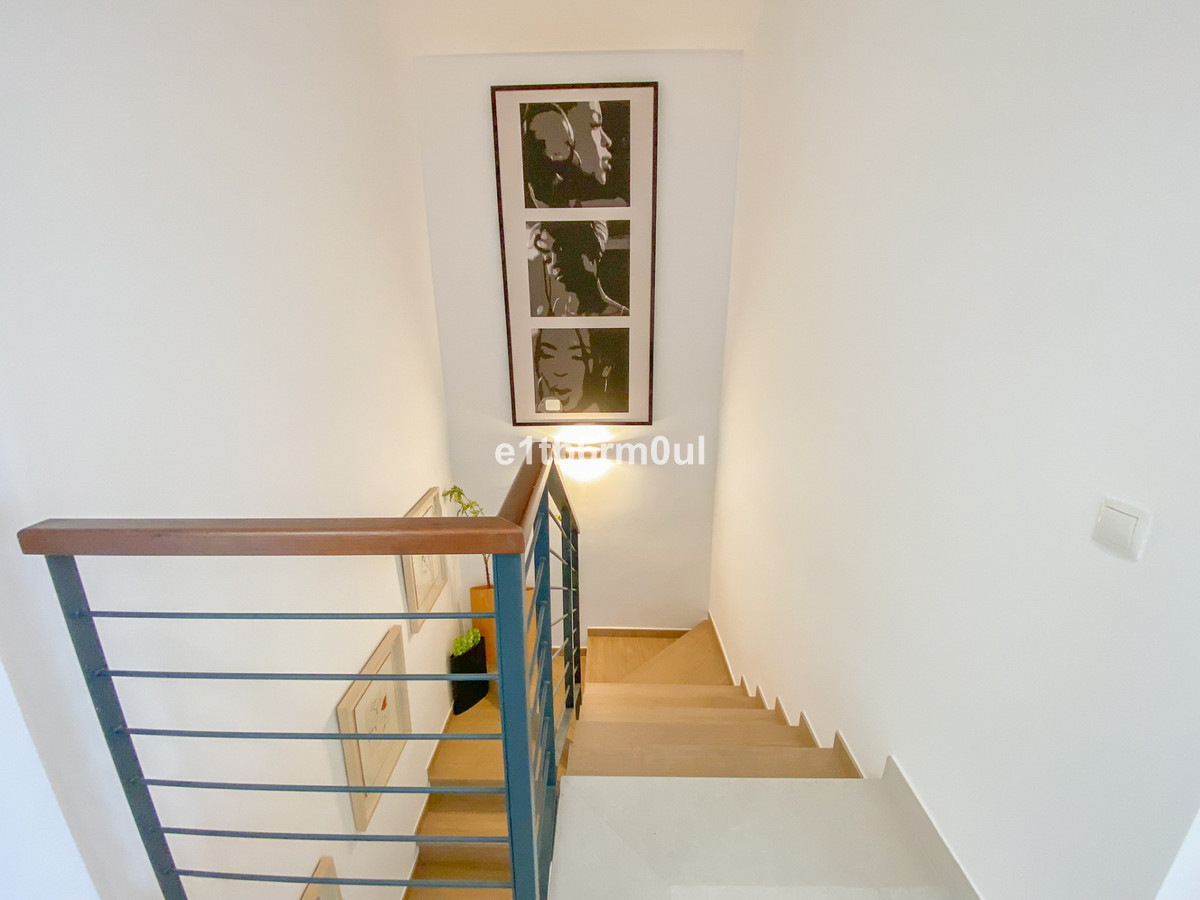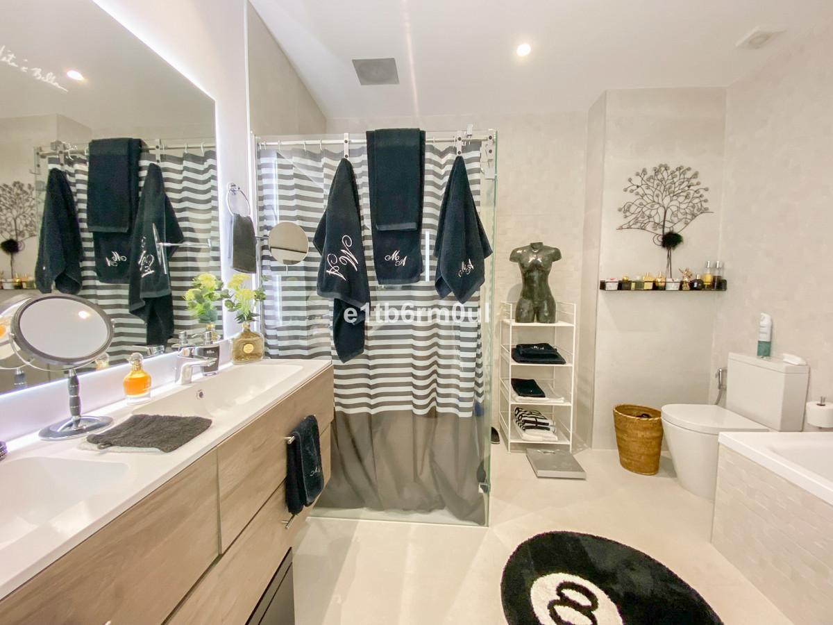 This luxury house with spectacular sea views is located in Terrazas de Cortesin near the beautiful town of Casares Playa, Málaga. It is 30 minutes to Casares Pueblo and only a few minutes to the beach. This property offers ample space for modern living. Bright and spacious living room with floor-to-ceiling windows that lead out onto a spectacular terrace perfect for relaxing and entertaining. The fully fitted kitchen is equipped with modern appliances, making it a delight for cooking enthusiasts, and has a separate utility room. The two bedrooms on the first floor are en-suites and enjoy spectacular open views, the master bedroom has a private terrace, the third en suite bedroom is conveniently found on the ground floor.