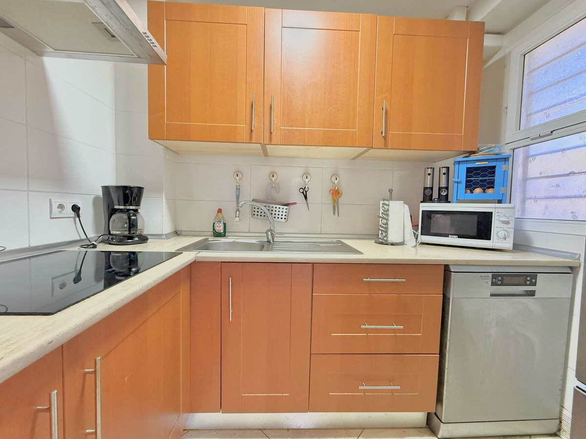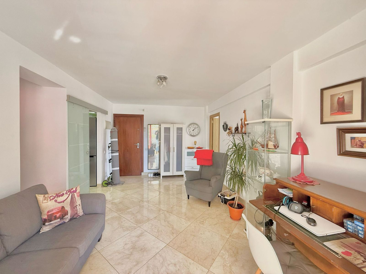 Upon entering, you are welcomed by a bright and cozy atmosphere. The living room is spacious, with large windows that allow plenty of natural light to enter and provide access to a private terrace, perfect for enjoying breakfast or relaxing while taking in the urban landscape and the distant sea.
