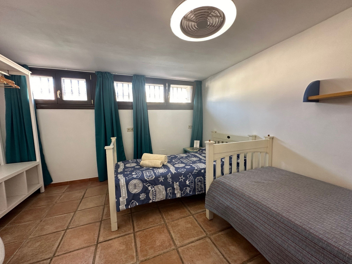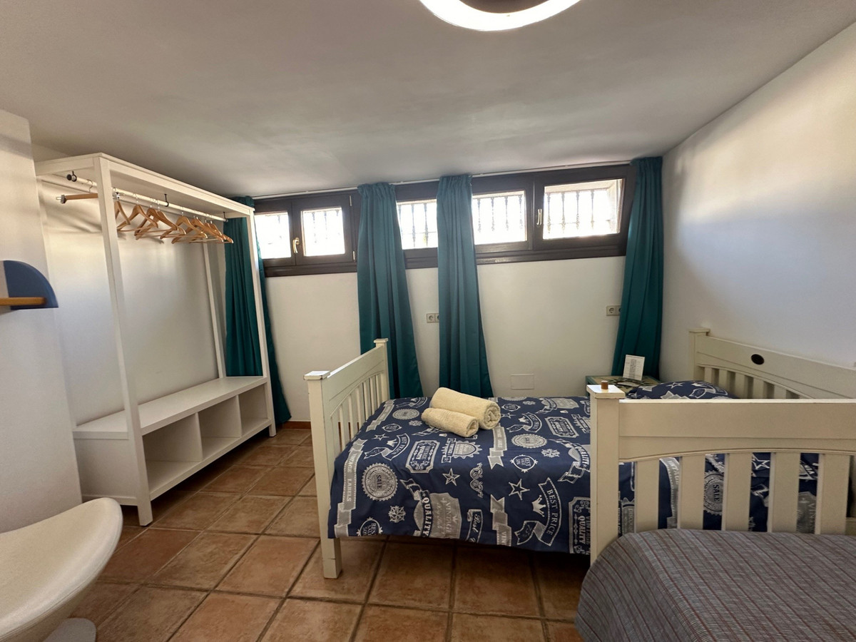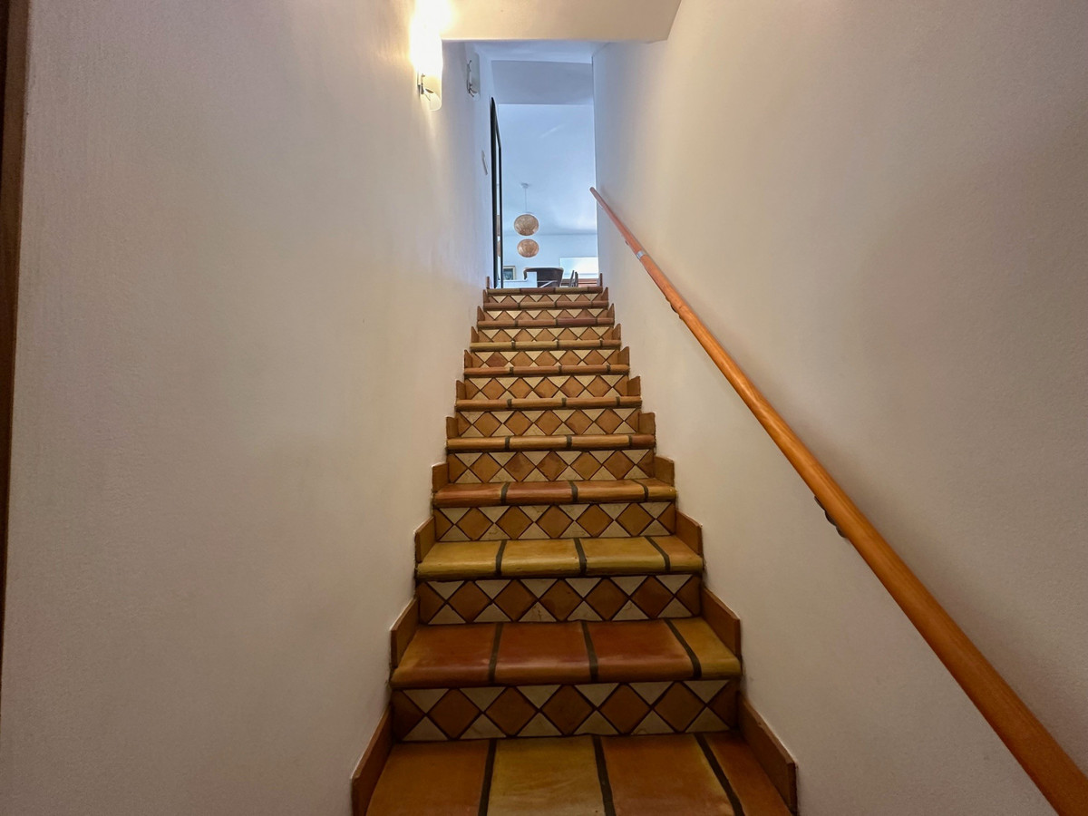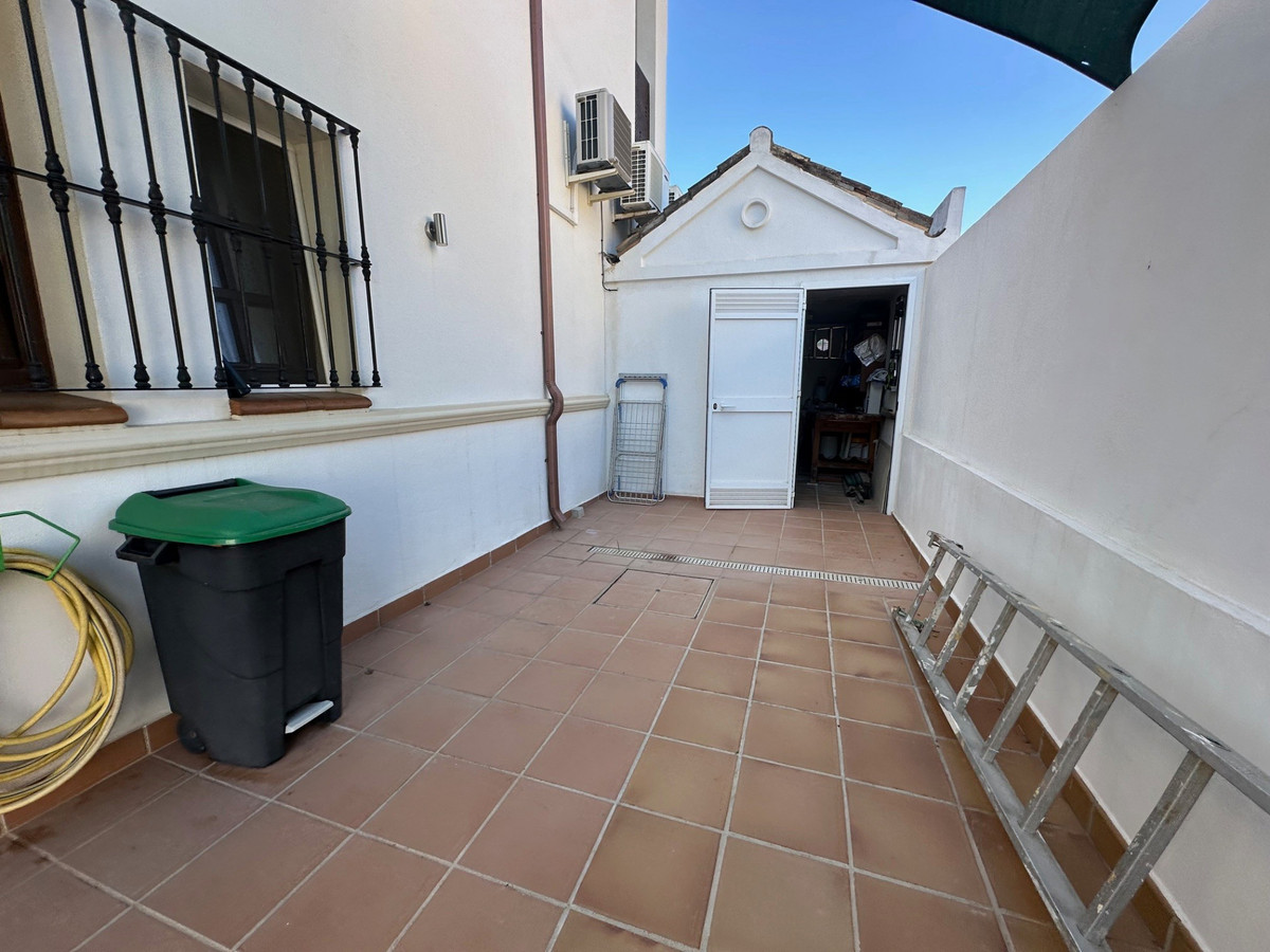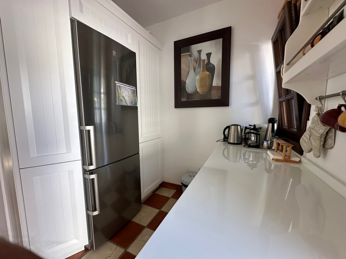 Beautiful rustic, solidly built house on the sea side of San Pedro de Alcantara. The house consists of an entrance area with an open modern kitchen, living-dining room with exit to a raised terrace with a beautiful view of the greenery. In this entrance area there is a bedroom with bathroom, one suite. In the upper part there are 3 further bedrooms with 2 bathrooms. On the ground floor there are 2 further bedrooms and 1 bathroom. There is also another living room and a storage room. There are 2 carports, a heated swimming pool and a beautiful, well-kept garden around the house. Due to the west-facing location, the house is very bright and sunny. Ideal family home or for renting all year round. The beach or the center of San Pedro are only a few minutes' walk away.