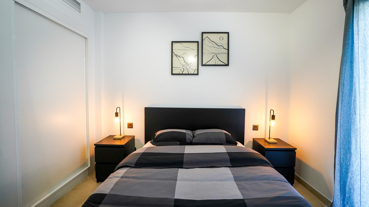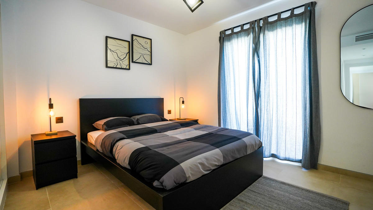Step inside to discover the thoughtfully designed interior, spanning a generous 86 square metres. The apartment features an open plan, fully-fitted kitchen, seamlessly blending with the modern living room to create an inviting space. Each room is adorned with premium fittings, including fitted wardrobes and lift access, ensuring both convenience and luxury. High-specification air conditioning maintains a comfortable climate throughout the year, and the tasteful furnishings add to the contemporary charm.