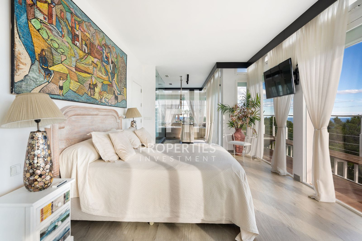 The interior spaces harmonize perfectly with the exterior. Imagine a fantastic living room with a winter garden, panoramic windows and a transparent dome that transforms the space into a true oasis. The magnificent kitchen, designed with a wonderful island and fireplace, offers stunning views of the Mediterranean. The two suites, each approximately 45 m² in size, are unique and singular, while the five double bedrooms, very bright and elegantly decorated, are ideal for families or guests.
