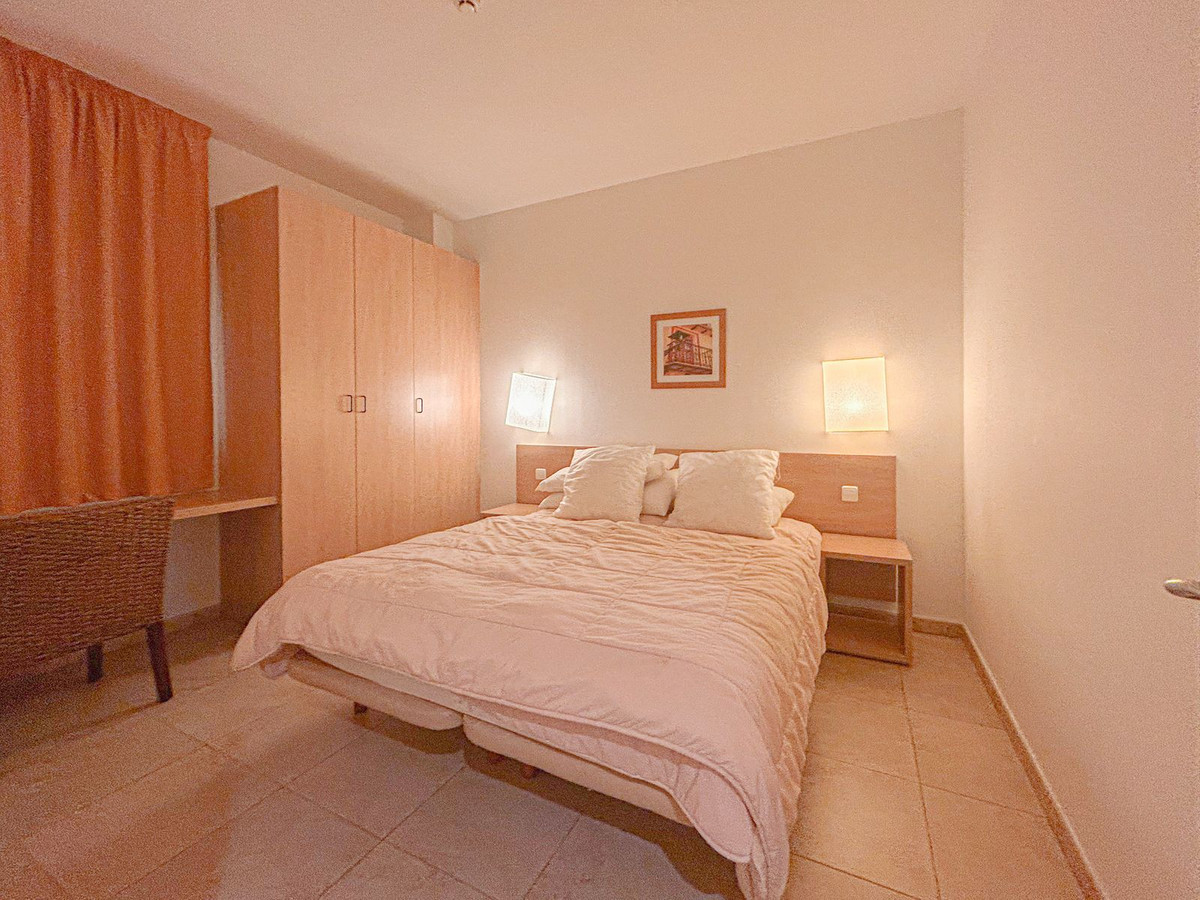 Nice and cosy apartment for sale in Manilva. The apartment has one bedroom, one bathroom, equipped kitchen and living room. It is situated in an authentic Andalusian holiday village, with two pools, a restaurant, bar and views to the street of Gibraltar. In the urbanisation you can find a space for children, a space to play football, basketball and handball. It is located 500m from the sea. A rental contract is in place. The complex is gated, providing security, which is an attractive feature for potential tenants and buyers.And the harbour and beach of Sotogrande just 5 minutes away by car.