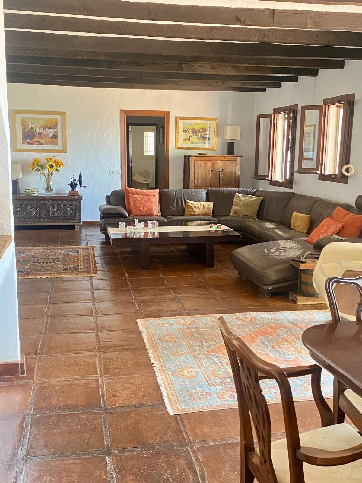 This traditional feel finca is on one level and has a cosy rustic but modern feel with vaulted and beamed ceilings in many of the rooms, which keep the house cool in the summer months. The large living/dining area is light and fresh in the summer and during those occasional cooler evenings during the winter months you can enjoy the open fire as well. It's a well balanced mix of a cosy rustic feel yet light with modern touches in the bathrooms and a bright kitchen which connects to the living area. The finca faces east south and west with great views to enjoy from every window.