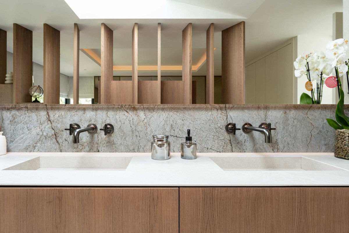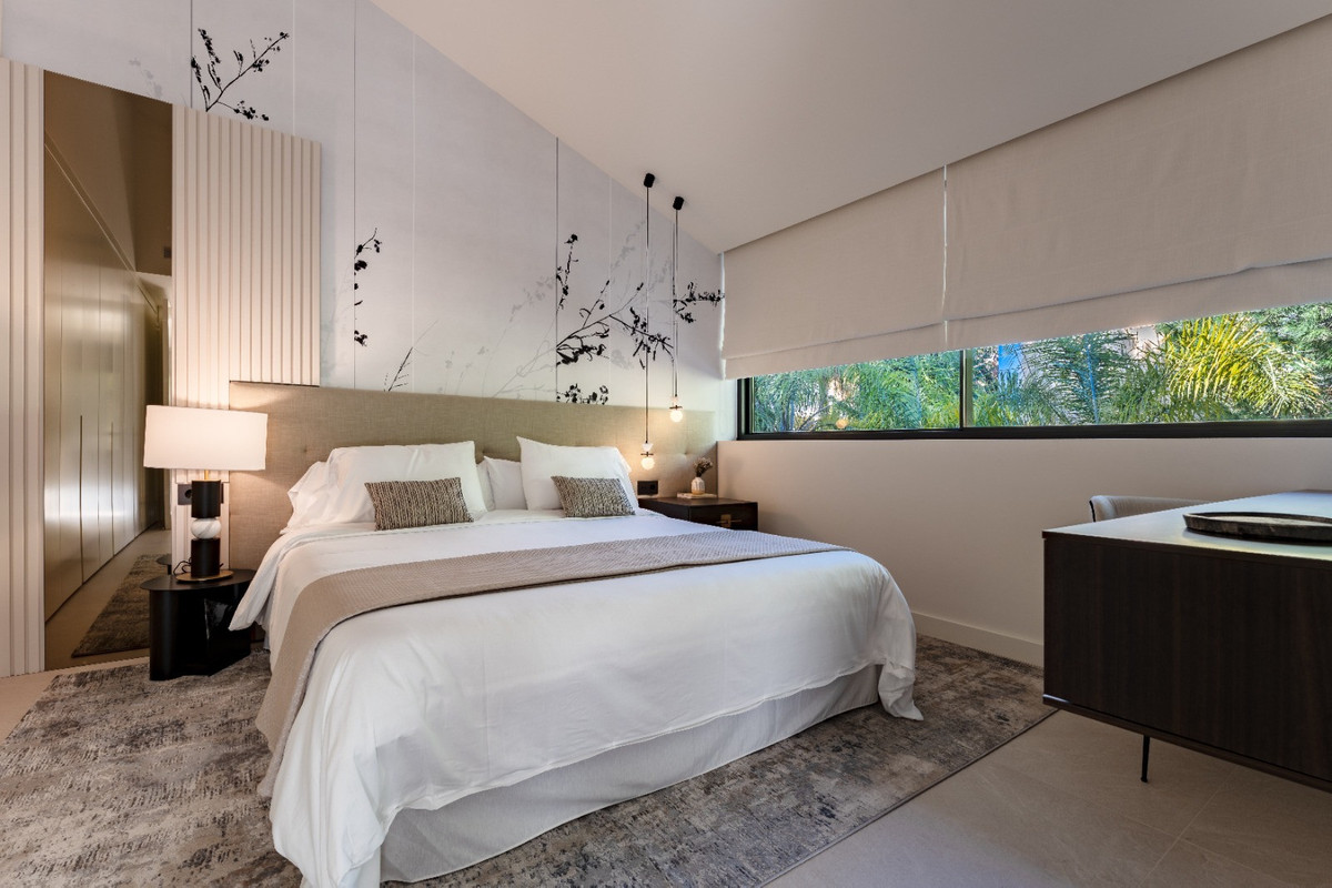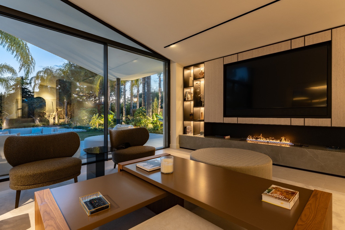 Stunning five bedroom newly renovated Villa, nestled within the exclusive gated community of Hacienda Las Chapas, the most elegant villas district in the eastern part of Marbella. This impeccable property offers the perfect blend of modern luxury and Mediterranean charm. Set on a beautifully landscaped 1,562 m² plot with over 50 swaying palm trees, the home spans 717 m² of elegant living space, designed for comfort and sophistication. The open plan kitchen, seamlessly integrated with the spacious living and dining areas, features top of the line appliances and sleek contemporary finishes, creating an inviting space for both entertaining and everyday living. Large floor to ceiling windows flood the interiors with natural light and open onto the expansive outdoor terraces, where a bio-climatic electric pergola provides shade and style. The heated swimming pool, reaching up to 35°C in winter, is the perfect place to relax and unwind, surrounded by lush greenery for ultimate privacy. The Villa also boasts underfloor heating, air conditioning, a gym, and a stylish games room with a pool table. A covered carport for up to five cars offers secure and convenient parking with direct access to the house. This exclusive area is ideally located close to amenities while maintaining a sense of seclusion. Hacienda Las Chapas offers 24-hour security and is situated close to Marbella's white sandy beaches, various renowned five star hotels, exclusive beach clubs as well as many restaurants and 3 minutes walk to shopping facilities. There are excellent tennis clubs within walking distance and close to the yachting port in Cabopino. Three of the most renowned international schools of the Costa del Sol are situated very close to Hacienda Las Chapas, the English International School, the German School and the Colegio Ecos.