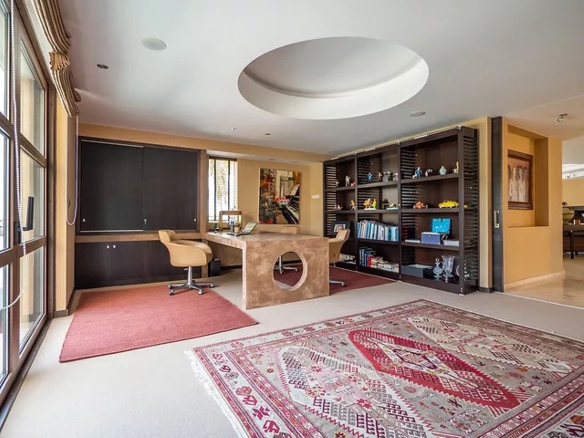 The lower floor consists on one side of the house for housekeeping quarters with living room, kitchenette and separate toilet, bedroom, bathroom and spacious patio. In between is a 6 car garage and hobby room. The south side has a cinema room, massage room, wine cellar, pool/bar room as well as an extensive gym area, inside jacuzzi, Klafs Swedish sauna with infrared.