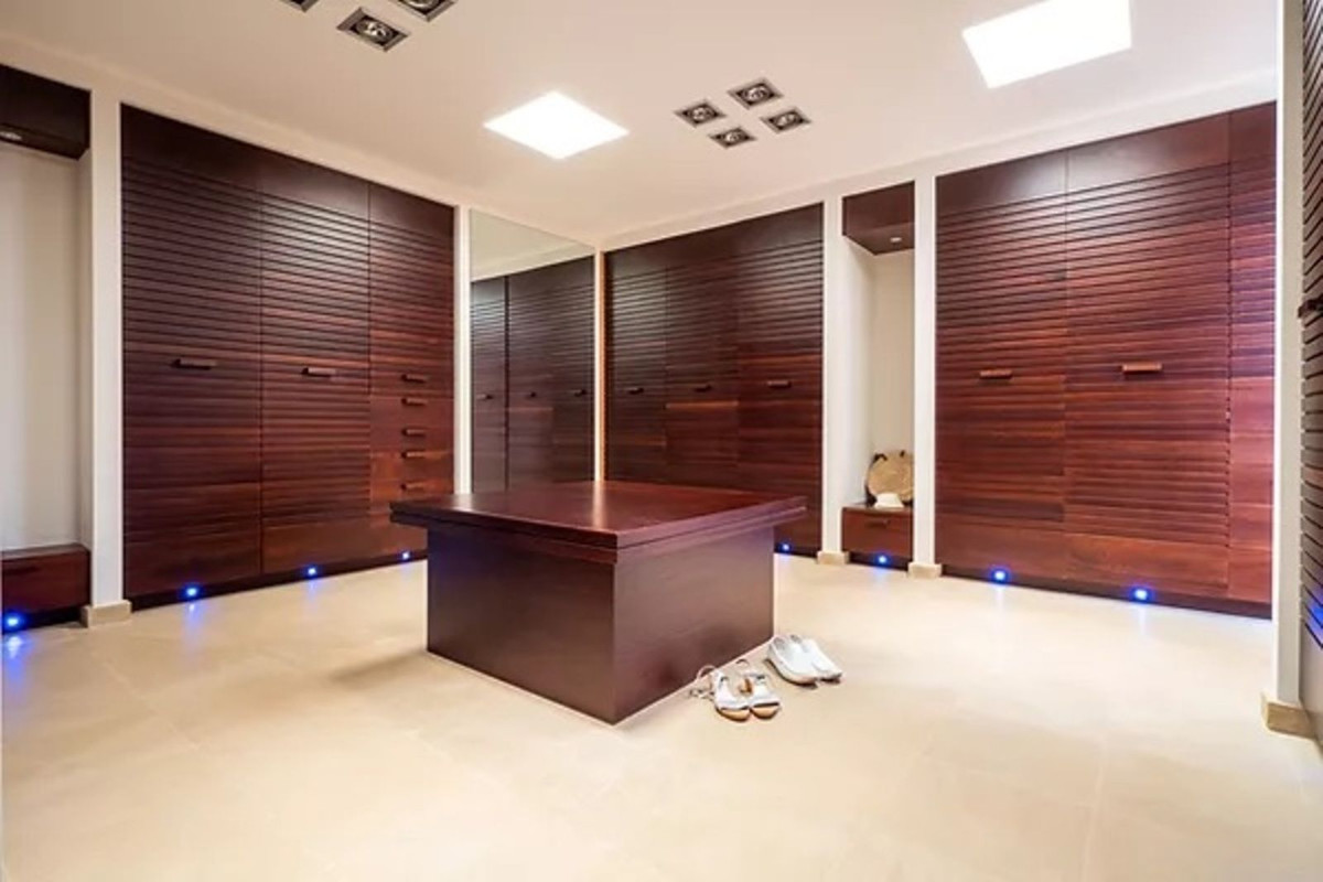 The upper floor consists of all the 5 bedrooms with ensuite bathrooms, each properly designed with refreshing ideas and little surprises. The east wing is reserved for the Master Suite, consisting of the bedroom with panoramic window to the sea, rising tv screen in front of the bed, ensuite bathroom with terrace and outdoor shower. The walk-in closet is custom designed with wooden cabinets. There are safety doors and secret separations for children's safety.