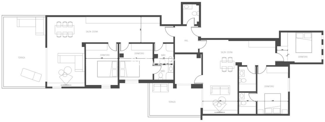 With a total area of 180 m², oriented from north to south, this property is situated on the first floor of a building with an elevator. It is divided into two separate apartments, offering versatility and privacy. The first unit features 3 bedrooms, 2 bathrooms, a spacious living room with excellent natural lighting, and is fully furnished and tastefully decorated. The kitchen, equipped with high-end Bosch appliances, is fully stocked, and from the living room, you can access a balcony and a south-facing terrace with stunning views. The second unit includes 2 bedrooms and 2 bathrooms, a bright and modern living room with access to a sunny terrace that also offers beautiful views. Like the first unit, it is fully furnished, and the kitchen is equipped with Bosch appliances.