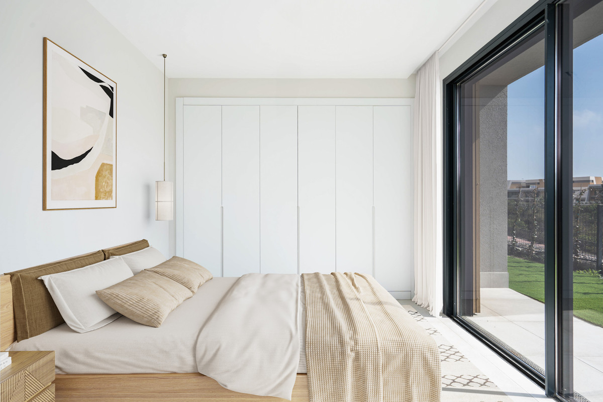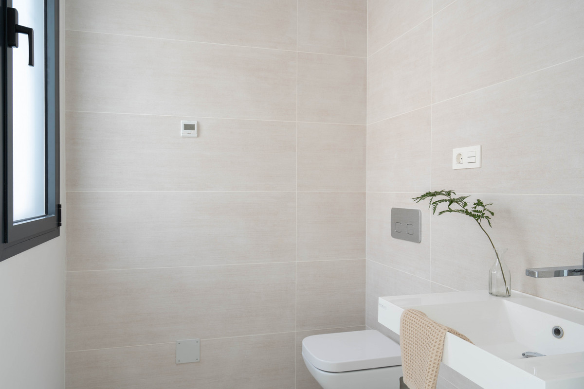 This home has been designed to balance style with comfort. The open-plan communal areas and generous interiors are crafted to flood the space with natural light, providing an incredibly inviting living experience. The expansive living room features large picture windows and high-quality porcelain floor tiles, creating an effortlessly bright and airy environment that maximizes daylight throughout the day. The spacious terrace offers panoramic sea views—an ideal setting to unwind and witness breathtaking sunsets. The kitchen flows seamlessly into the living area, contributing to the open, fresh ambiance that’s perfect for relaxed, everyday living. Top-tier finishes, including quartz countertops, integrated appliances, and ambient LED lighting, further elevate the space, adding sophistication and warmth. In the bathrooms, large-format porcelain tiles exude elegance, underscoring the attention to detail and commitment to quality design.