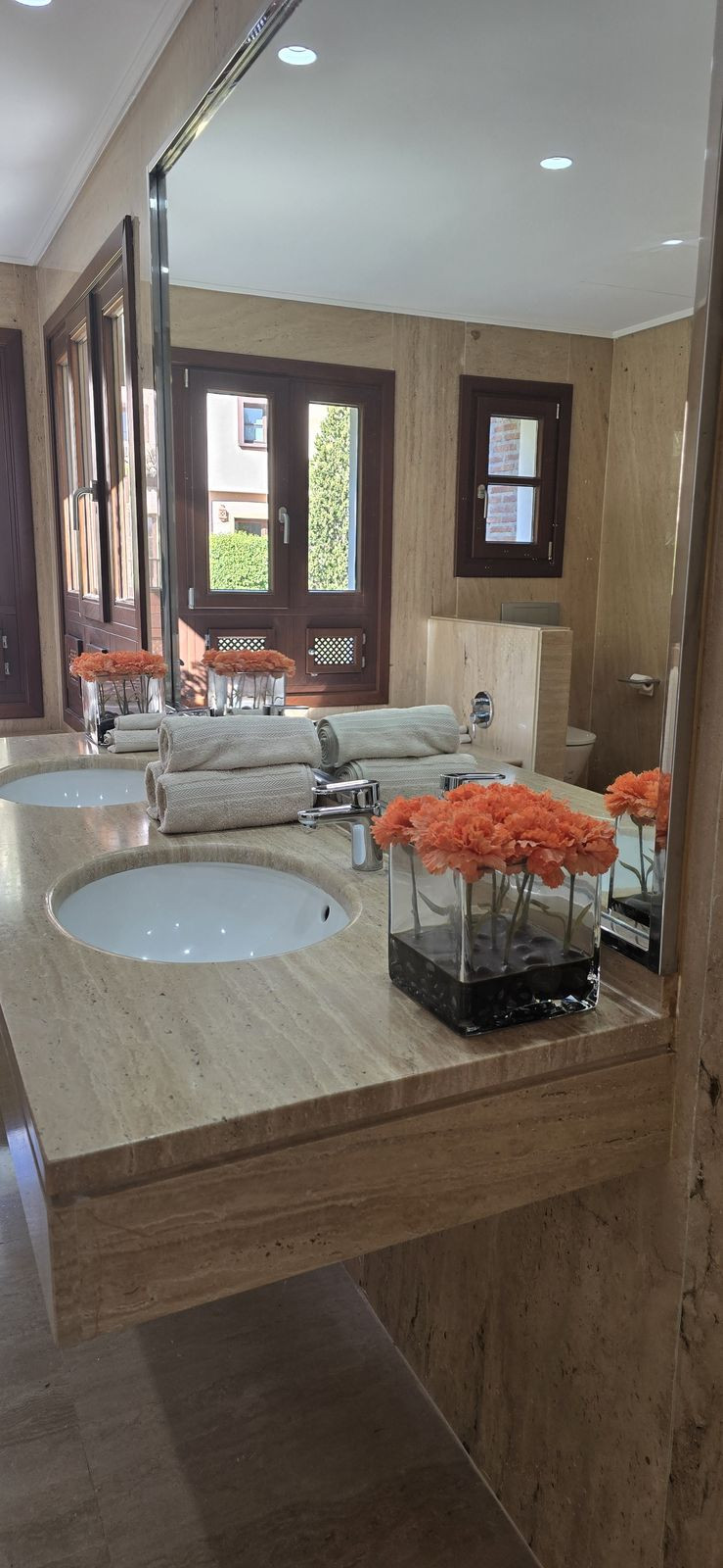This beautifully renovated villa is located in the highly desirable gated community of La Capellania Hill Club, on the prestigious Golden Mile. Spanning nearly 500 sqm across three floors, all connected by an elevator, the villa boasts six en-suite bedrooms. The spacious living and dining areas offer stunning views of the lush gardens and the sea, while the large, fully renovated kitchen features a separate dining area.