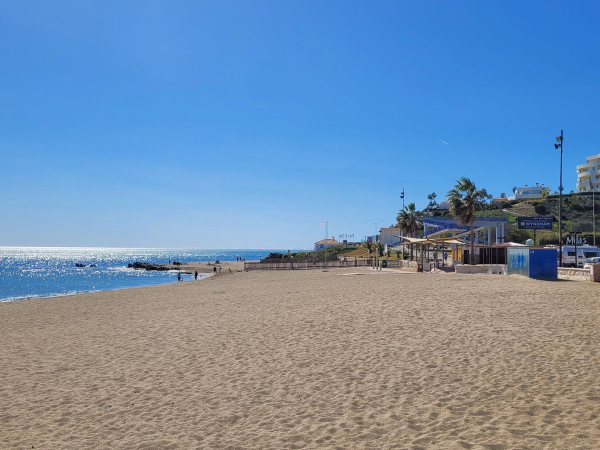 Walk into your living room and look at this! A bright blue sea with an equally blue sky immediately provides the best home or holiday feeling. This bright penthouse offers truly breathtaking views of the sea, the castle, and the bustling city of Fuengirola, which is less than a 10-minute walk away. The beach can be reached across the complex via a pedestrian bridge. From the spacious rooftop terrace, there is a view of the mountains, the city, and the sea. If you prefer to sit outside, next to the living room and kitchen, there is also a sunny terrace here. The penthouse has two bedrooms (1 with en-suite bathroom) and two bathrooms. Stairs lead to the upper floor, which consists entirely of a large rooftop terrace. The complex has underground parking and a large swimming pool where there is always room for a dip after a day of shopping at Myramar (the shopping center which is a 10-minute walk away) or an afternoon at the beach.