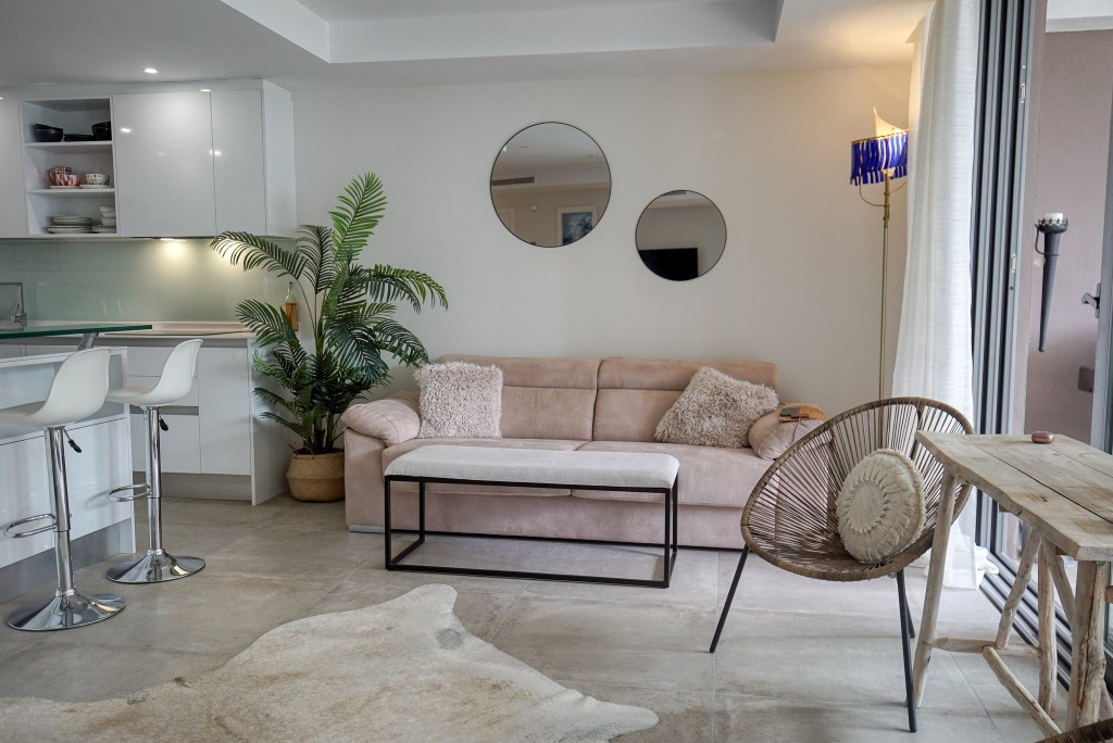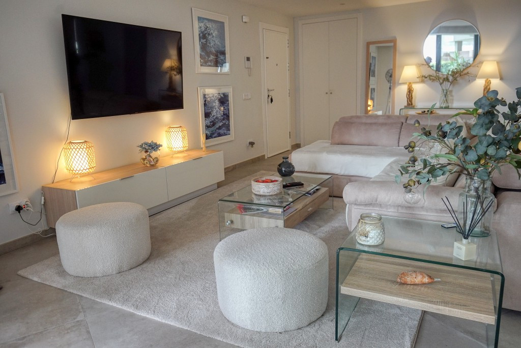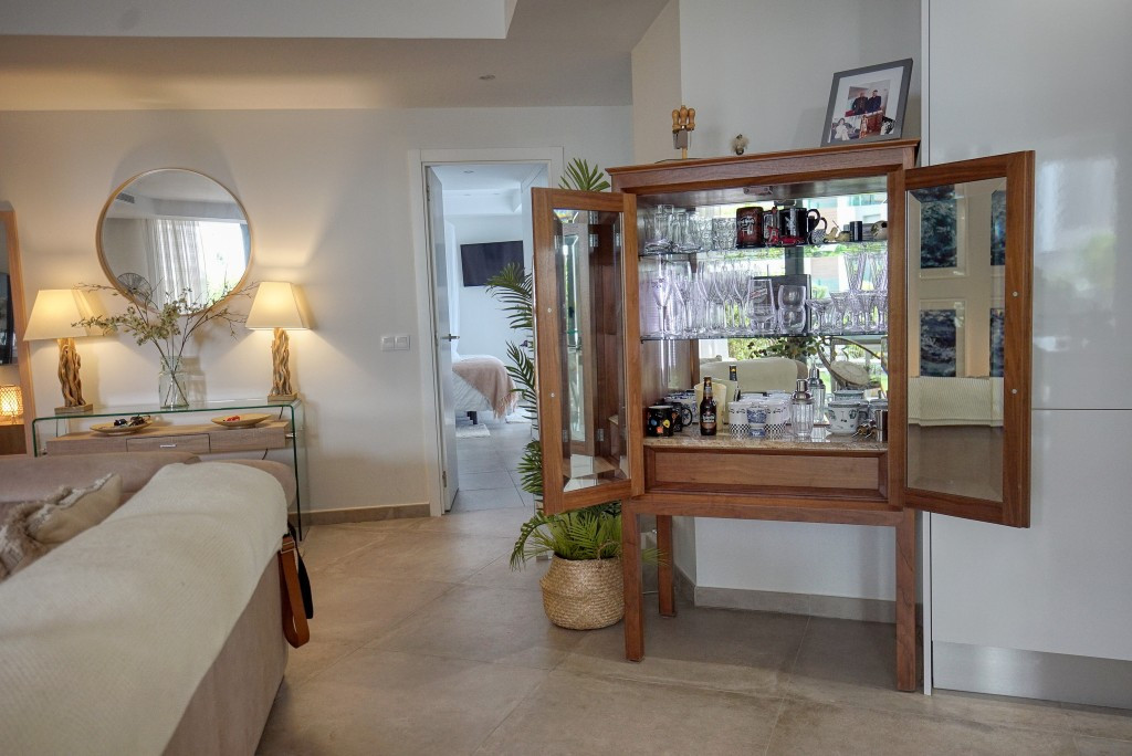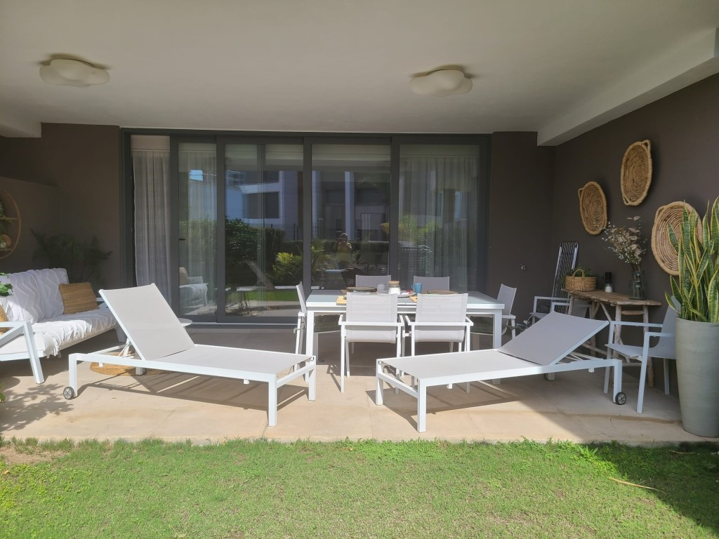 Discover this beautifully presented, furnished 2 bedroom 2 bathroom garden apartment that offers exceptional living. Enjoy bright, extra spacious interiors with an open plan kitchen, dining and living area that seamlessly transitions to a large covered terrace and sunny , south facing garden - perfect for outdoor dining and relaxation. Key features, 112m2 usable living space, large covered terrace of 25m2 plus private uncovered garden with direct access through a gate to the beautifully landscaped pool area. Contemporary finishes throughout, including upgrades to hansgrohe shower , soft close features on all wardrobe doors and glass breakfast bar. Fully equipped kitchen, 2 double bedrooms with ample built in closet space, 2 full bathrooms , one en-suite. Convenient location, Just a short walk to a variety of restaurants, bars. shops, banks, and the beach. Wonderful accessibility, only 5 minutes drive to Estepona town and 5 minutes to San Pedro, this apartment is a must see for anyone looking to blend luxury with convenience. Keys in office for easy viewings, don't miss your chance to experience this wonderful property!