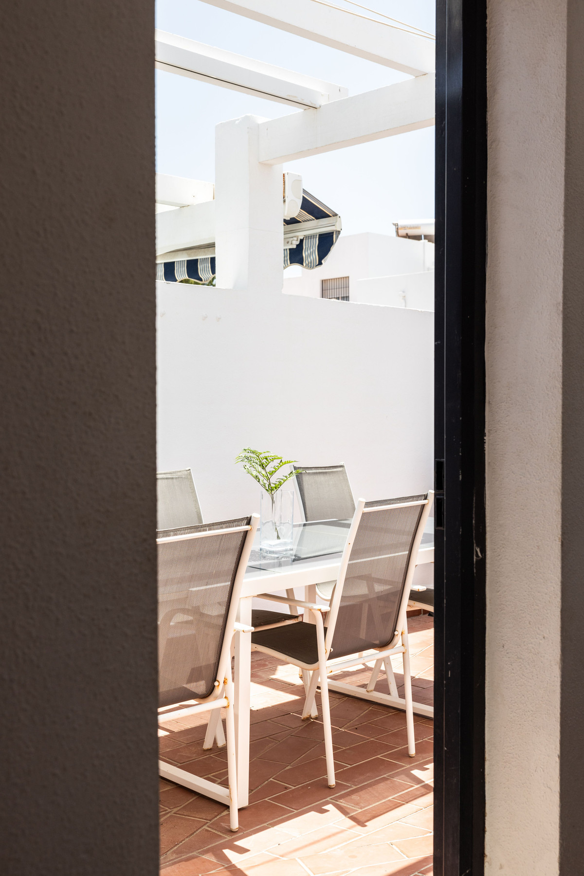 On the entrance floor opens a spacious living room with an atmospheric fireplace. There is a convenient connection from the dining room to the spacious kitchen. The middle floor has three comfortable bedrooms, one of which has its own bathroom. In addition, there is one more bedroom on the top floor of the apartment, which offers a wonderful sea view. From here you can also enjoy your own large roof terrace, sunshine and beautiful scenery.