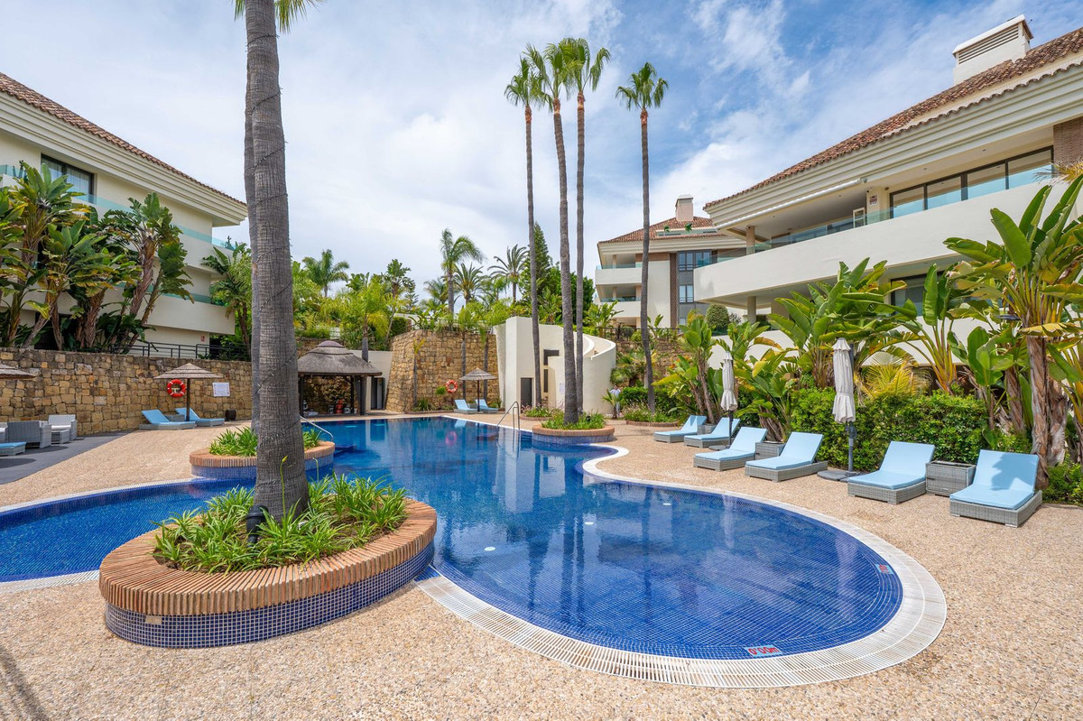 This 3 bedrooms southwest-facing ground floor apartment is located in the exclusive residential area of Los Monteros, renowned for its high security and the famous La Cabane beach club, at just 6 min walking from the most beautiful beaches. It is part of the only existing luxury apartment complex in this area, which features tropical gardens and an elegant swimming pool within a fully gated community.