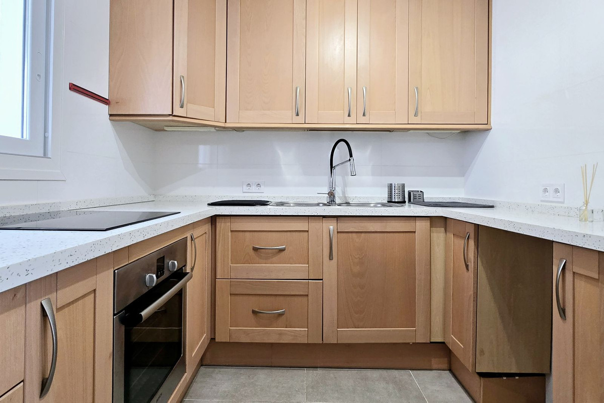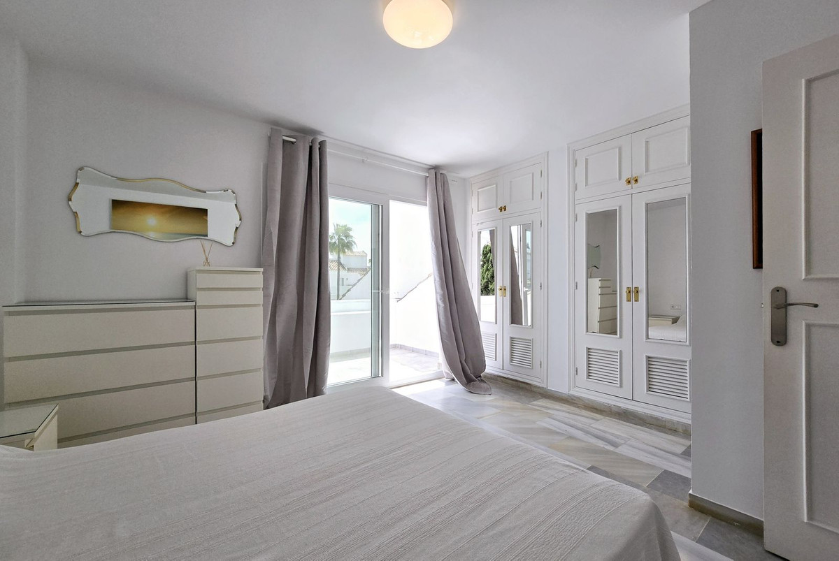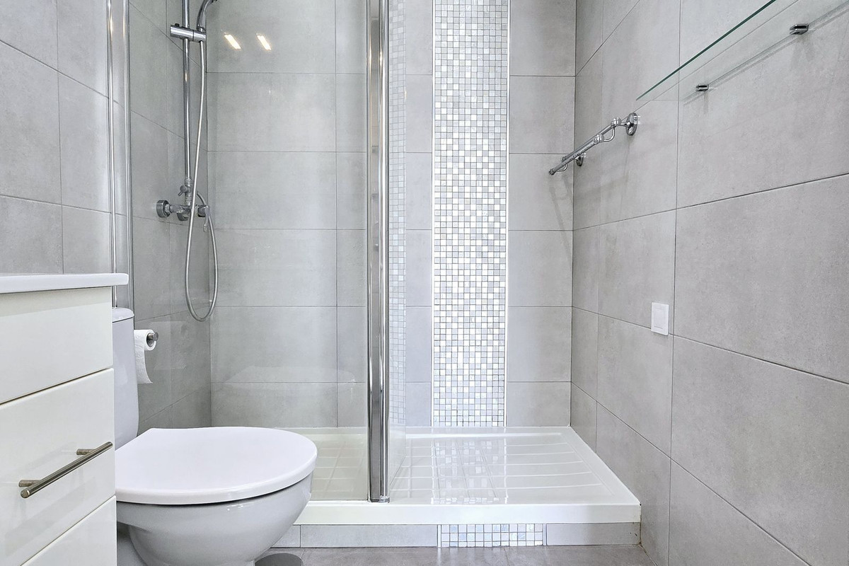 On the next level, we find the master bedroom en-suite, with its terrace, a large built-in wardrobe, and a newly renovated bathroom. On the other side of the staircase is the second bedroom, clear and bright with an ample built-in wardrobe, and a well-maintained bathroom nearby; both are very well-sized.