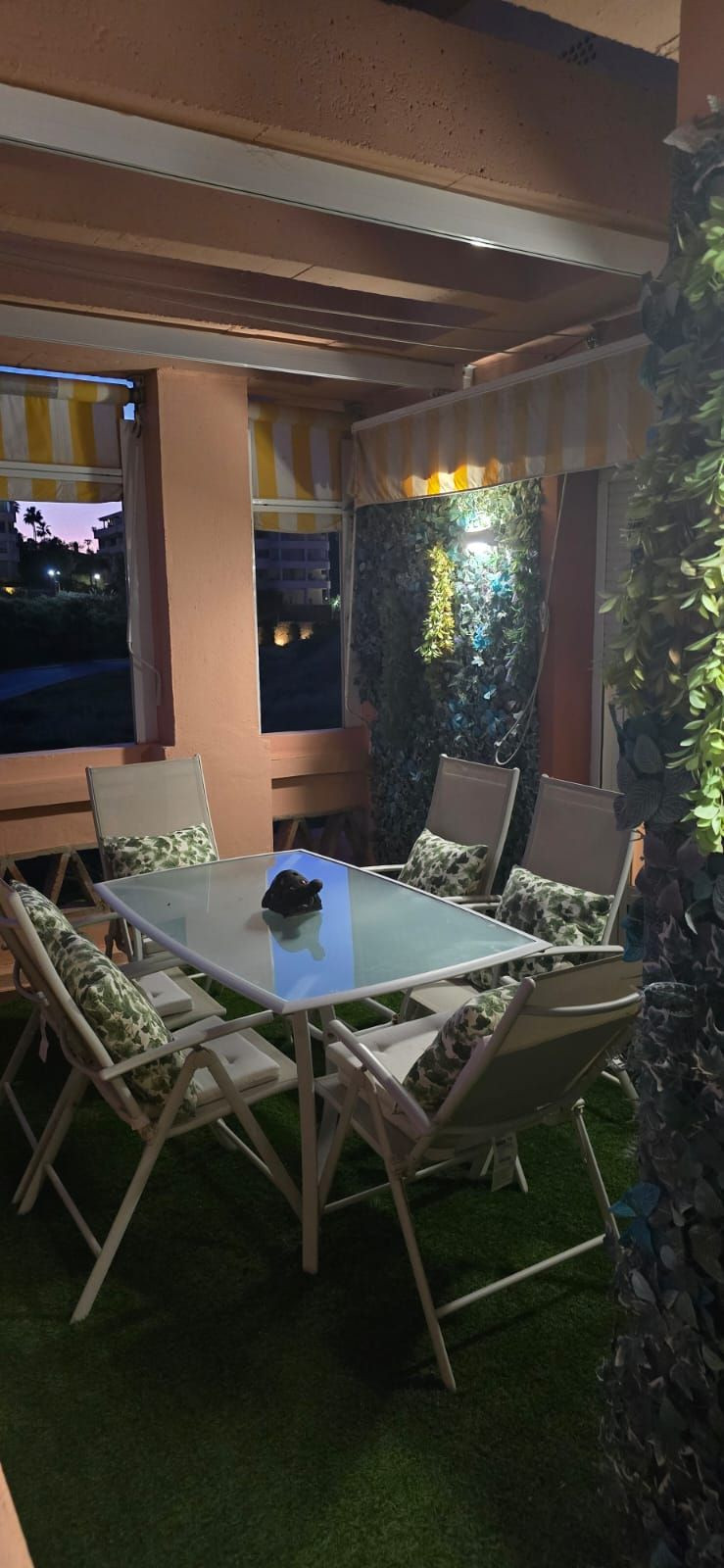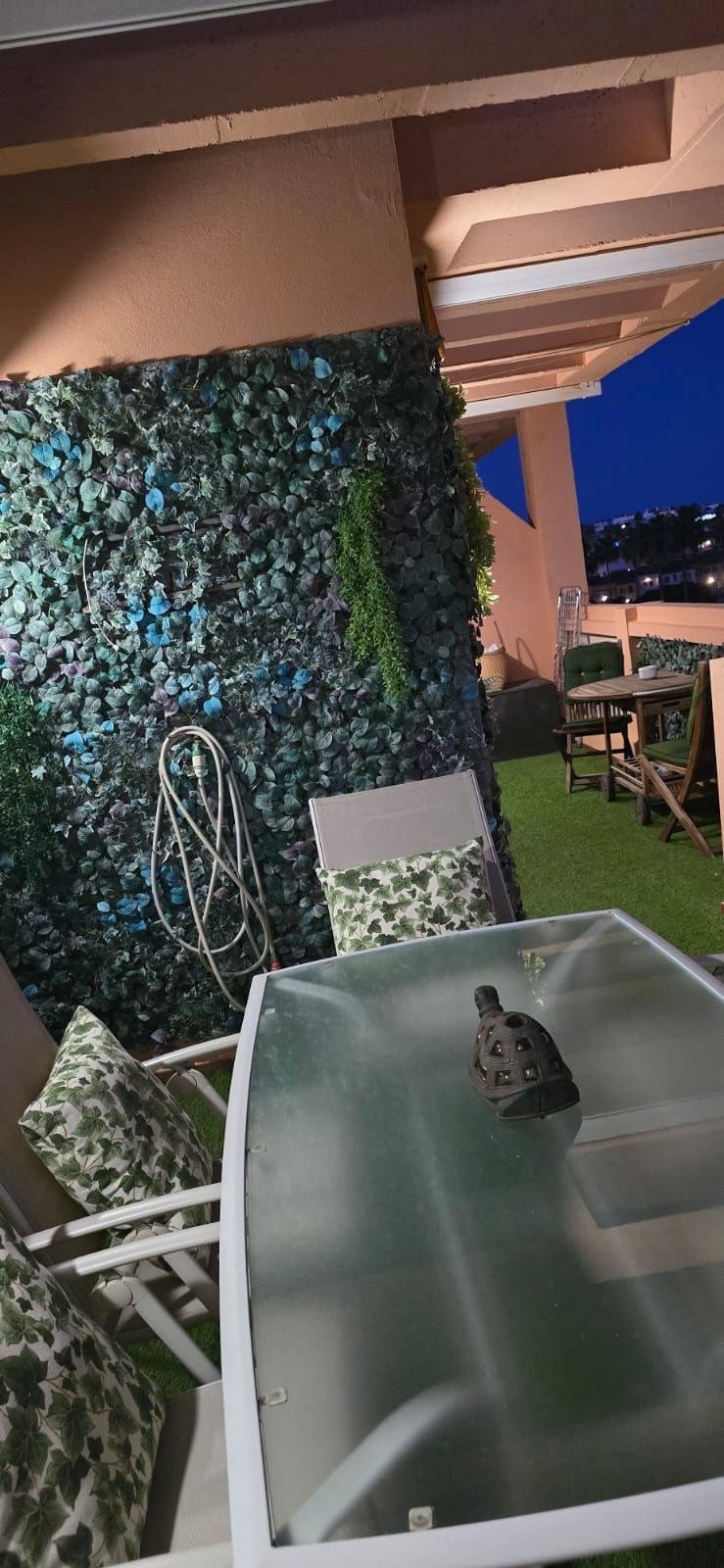 Duplex penthouse located in a rapidly expanding area between Fuengirola and Cala de Mijas (Chaparral-Calaburras golf course area), approximately 300 meters from Playamarina beach and El Charcón. It has 3 bedrooms, 2 bathrooms (one en suite with a hydromassage bathtub and separate shower), two living rooms, one on each floor, a fireplace, and an open-plan kitchen with state-of-the-art furniture. Marble floors and bathroom tiling. Recently renovated hot and cold air conditioning. Two large terraces, one per floor, equipped with sun awnings. The communal areas include gardens and a swimming pool for adults and children. The price includes a garage space and a large storage room